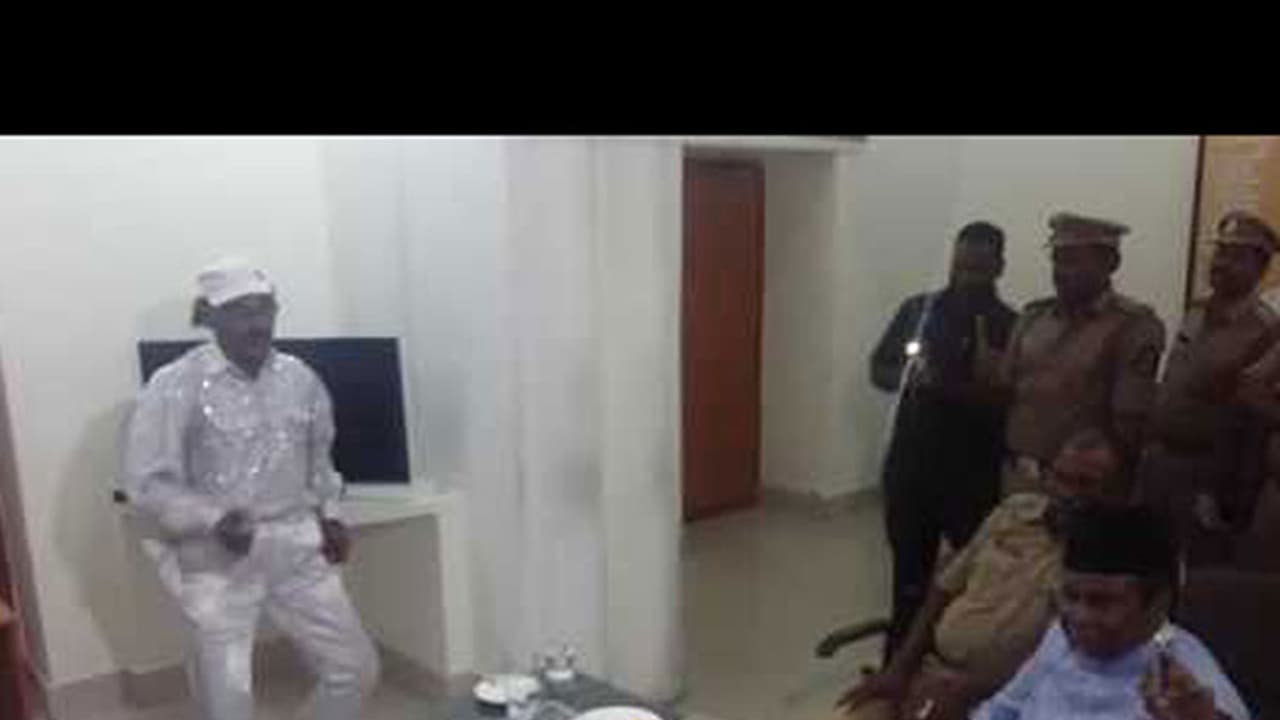 ಹೈದರಬಾದ್(ಸೆ.29): ಮಾಟ ಮಂತ್ರ ಮಾಡಿ ಜನರನ್ನು ವಂಚಿಸುತ್ತಿದ್ದ ಡೋಂಗಿ ಬಾಬಾ ಹೈದ್ರಾಬಾದ್ ನ ಡಿಸಿಪಿ ಕಚೇರಿಯಲ್ಲಿ ಪೊಲೀಸ್ ಅಧಿಕಾರಿಗಳ ಮುಂದೆಯೇ ಡಿಸ್ಕೊ ಡ್ಯಾನ್ಸ್ ಮಾಡಿದ್ದಾನೆ.