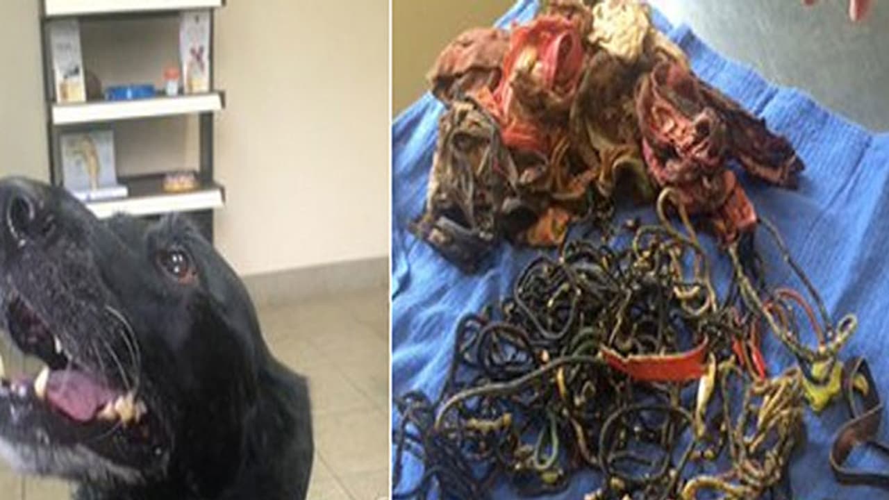 ನಾಯಿಗಳು ಮಾಂಸ, ಮೀನು ತಿನ್ನುವುದನ್ನು ಕೇಳಿದ್ದೇವೆ ಆದರೆ ಇಲ್ಲೊಂದು ನಾಯಿ ತಿನ್ನುವ ಹಾಗೂ ಧರಿಸುವ ವಸ್ತುಗಳನ್ನು ಕನ್ಫ್ಯೂಸ್ ಮಾಡಿಕೊಂಡಿದೆ. ಯಾಕೆಂದರೆ ಈ ನಾಯಿಯ ಹೊಟ್ಟೆಯಲ್ಲಿ ಪತ್ತೆಯಾಗಿದ್ದು ಬರೋಬ್ಬರಿ 8 ಒಳ ಉಡುಪುಗಳು ಹಾಗೂ 62 ಹೇರ್ ಬ್ಯಾಂಡ್, 4 ರಬ್ಬರ್ ಬ್ಯಾಂಡ್'ಗಳುಗಳು ಪತ್ತೆಯಾಗಿವೆ.