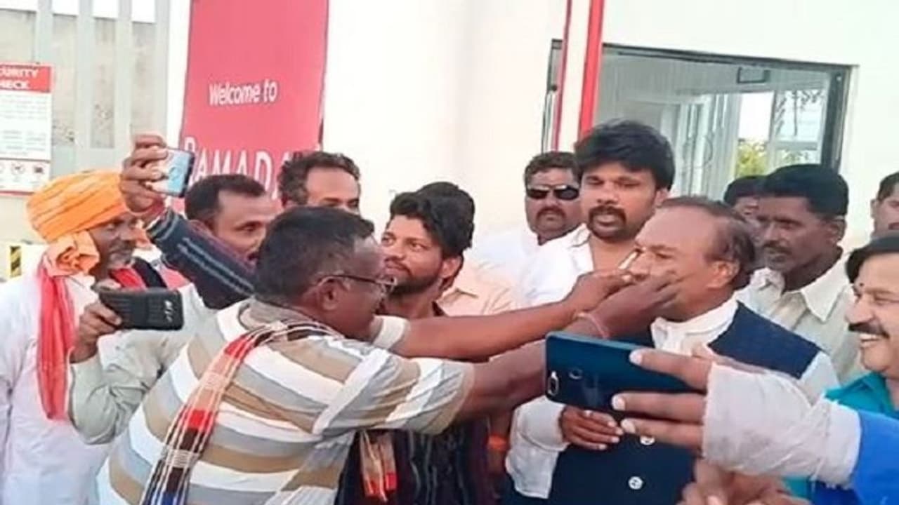 ನೆಚ್ಚಿನ ನಾಯಕರನ್ನ ಭೇಟಿ ಮಾಡಲು ರೆಸಾರ್ಟ್ ಬಳಿ ಬೀಡು ಬಿಟ್ಟ ಅಭಿಮಾನಿಗಳು ಸೆಲ್ಫಿಗಾಗಿ ಮುಗಿ ಬೀಳುತ್ತಿದ್ದರು. ಈ ವೇಳೆ ಈಶ್ವರಪ್ಪ ಮತ್ತು ರಾಮದಾಸ್ ಬಳಿ ಸೆಲ್ಪಿ ತೆಗೆದುಕೊಳ್ಳುತ್ತಿದ್ದ ಅಭಿಮಾನಿಗಳಲ್ಲಿ ಒಬ್ಬಾತ ಈಶ್ವರಪ್ಪ ಅವರನ್ನು ಕಂಡ ತಕ್ಷಣ ಫುಲ್ ಖುಷ್ ಆಗಿ ಕಿಸ್ ಕೊಟ್ಟಿದ್ದಾನೆ.