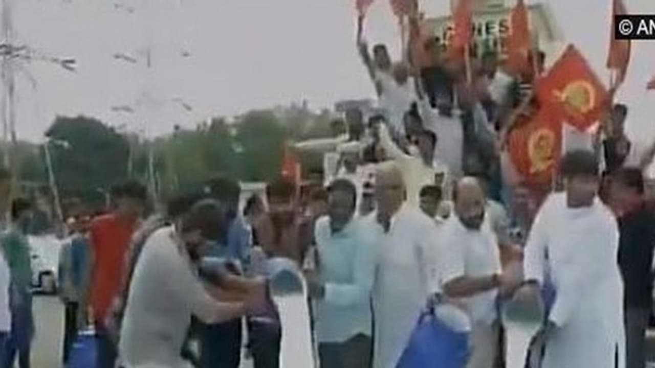ಕ್ಷತ್ರಿಯ ಸೇನಾ ಠಾಕೂರ್ ನೇತೃತ್ವದಲ್ಲಿ ಇಂದು ನಡೆದ ಹೋರಾಟದಲ್ಲಿ ಸಾಲ ಮನ್ನಾ ಮಾಡಬೇಕೆಂದು ಆಗ್ರಹಿಸಿ ರೈತರು ನೂರಾರು ಲೀಟರ್ ಹಾಲನ್ನು ರಸ್ತೆಗೆ ಸುರಿದು ಪ್ರತಿಭಟಿಸಿದ್ದಾರೆ.