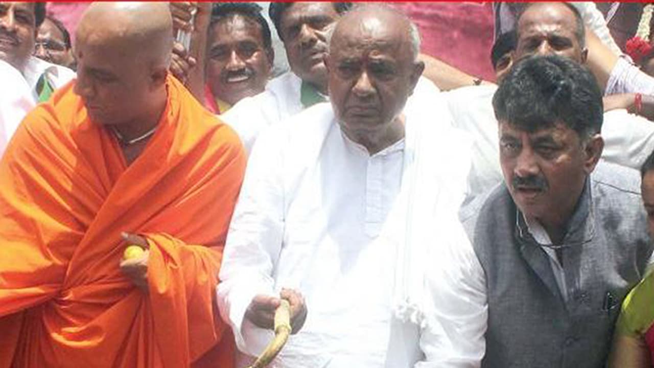 ಇದೇ ಸಮಾರಂಭದಲ್ಲಿ ಇಂಧನ ಸಚಿವ ಡಿ.ಕೆ.ಶಿವಕುಮಾರ್ ದೇವೇಗೌಡರನ್ನು ನೋಡಿ ನಮಸ್ಕರಿಸಿದ ನಂತರ ಮಾತನಾಡಿದರು. ದೇವೇಗೌಡರು ಕಷ್ಟಪಟ್ಟು ಉನ್ನತ ಸ್ಥಾನಕ್ಕೆ ಏರಿದವರು. ಎಷ್ಟು ಮಂದಿ ಅಡೆತಡೆ ಹಾಕಿದರು ಅವರು ಸಾಧನೆ ಮಾಡಿದರು. ನನಗೂ ಸುಮಾರು ಮಂದಿ ಏಟು ಕೊಟ್ಟಿದ್ದಾರೆ. ಆದರೂ ಗಟ್ಟಿಯಾಗಿ ಇಲ್ಲಿ ನಿಂತು ಮಾತನಾಡುತ್ತಾ ಇದ್ದೇನೆ. ಯಾರು ಯಾರು ಏನೇನು ಏಟು ಕೊಟ್ಟಿದ್ದಾರೆ ಅಂತ ಗೊತ್ತಿದೆ. ಅದರಿಂದ ಹೊರಬರಲು ತಿಂಗಳುಗಳೇ ಬೇಕಾಗಬಹುದು. ನನ್ನ ಕಷ್ಟಕ್ಕೆ ಈಗ ಮಠ ಕೂಡ ಭಾಗಿಯಾಗಿದೆ. ಸ್ವಾಮೀಜಿಗಳೇ ನಿಮ್ಮ ಆಶೀರ್ವಾದ ನಮ್ಮ ಮೇಲೆ ಇರಲಿ ದೇವೇಗೌಡರ ಆಶೀರ್ವಾವಾದ ಕೂಡ ಇರಲಿ ಎಂದು ಡಿ.ಕೆ.ಶಿವಕುಮಾರ್ ಹೇಳಿದರು.