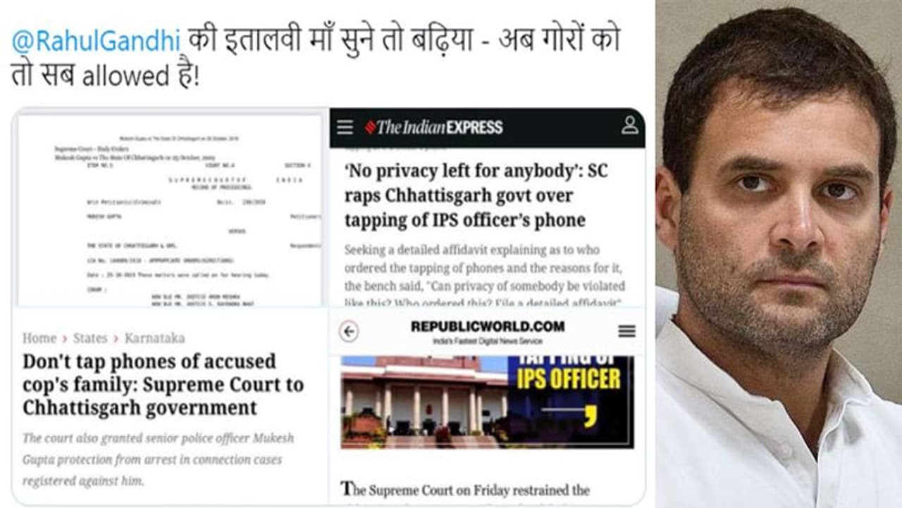 ಕಾಂಗ್ರೆಸ್ ಸರ್ಕಾರ ಆಡಳಿತದ ಚುಕ್ಕಾಣಿ ಹಿಡಿದ ಬೆನ್ನಲ್ಲೇ ಛತ್ತೀಸ್ಗಢದಲ್ಲಿ ನಡೆದ, ಅಕ್ರಮ ಫೋನ್ ಟ್ಯಾಪಿಂಗ್ ಪ್ರಕರಣದ ವಿಚಾರ ಸದ್ದು ಮಾಡುತ್ತಿದೆ. ಅಲೋಕ್ ಭಟ್ ಎಂಬವರು 2019 ರಲ್ಲಿ ವಿವಾದ ಸೃಷ್ಟಿಸಿದ್ದ ಛತ್ತೀಸ್ಗಢದ ಫೋನ್ ಟ್ಯಾಪಿಂಗ್ ಪ್ರಕರಣದ ಬಗ್ಗೆ ಟ್ವೀಟ್ ಮಾಡಿ ಸೋನಿಯಾ ಮತ್ತು ರಾಹುಲ್ ಗಾಂಧಿಗೆ ಸವಾಲೆಸೆದಿದ್ದಾರೆ.
