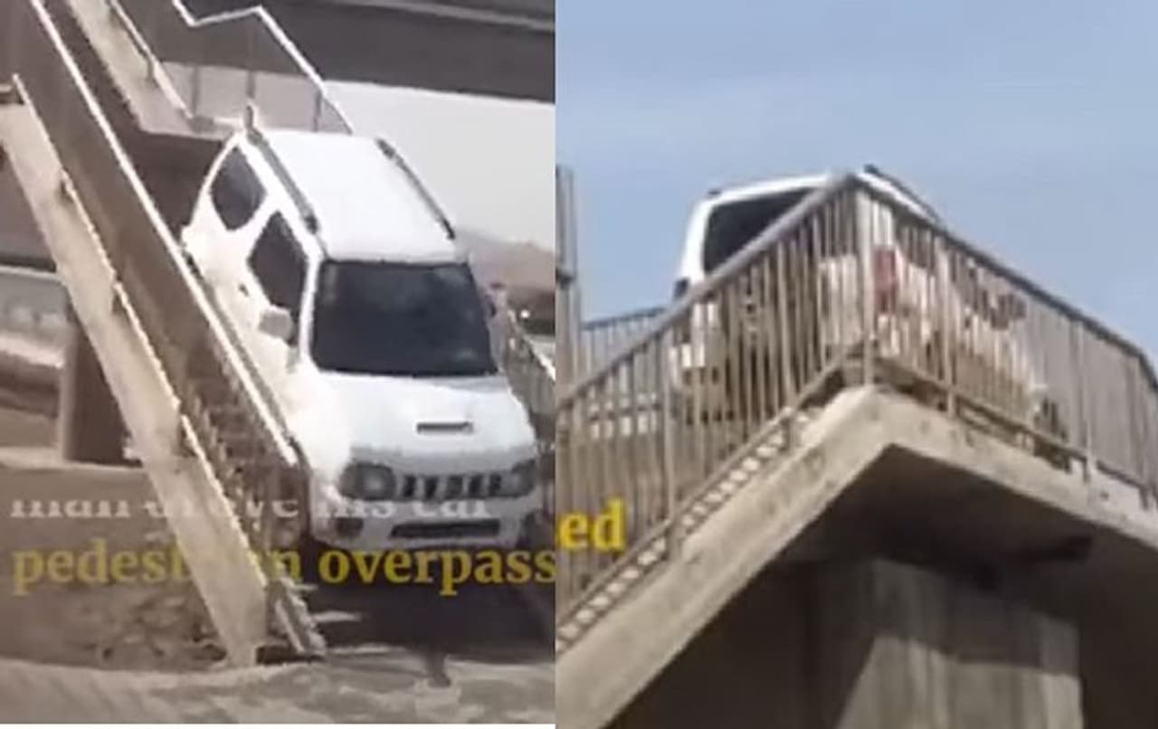 U ಟರ್ನ್ ಬದಲು ಪಾದಾಚಾರಿ ಸೇತುವೆ ಮೇಲೆ ಕಾರು ಹತ್ತಿಸಿದ, ಇಳಿದಾಗ ಸಾಹಸಿಗೆ ಕಾದಿತ್ತು ಅಚ್ಚರಿ!