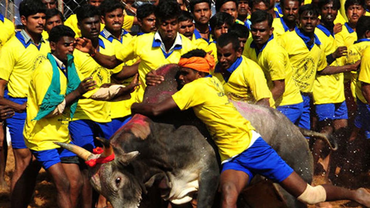 ಚೆನ್ನೈ(ಜ.22): ತಮಿಳುನಾಡಿನ ಸಾಂಪ್ರದಾಯಿಕ ಉತ್ಸವ ಜಲ್ಲಿಕಟ್ಟುವಿಗೆ ತಿರುಚನಾಪಳ್ಳಿ ಒಳಗೊಂಡು ಹಲವು ಜಿಲ್ಲೆಗಳಲ್ಲಿ ಅದ್ದೂರಿ ಚಾಲನೆ ದೊರೆತಿದೆ. ಜಿಲ್ಲೆಯ ಮನಪ್ಪರೈನಲ್ಲಿ ಗೂಳಿಯಾಟಕ್ಕೆ ಸಾವಿರಾರು ಜನರು ಸಾಕ್ಷಿಯಾದರು. ಕ್ರೀಡೆಯಲ್ಲಿ 100 ಕ್ಕೂ ಹೆಚ್ಚು ಗೂಳಿಗಳೊಂದಿಗೆ 500ಕ್ಕೂ ಹೆಚ್ಚು ರೈತರು ಪಾಲ್ಗೊಂಡಿದ್ದಾ.