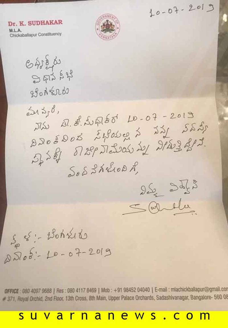 ಹೊಸಕೋಟೆ ಶಾಸಕ ಎಂಟಿಬಿ ನಾಗರಾಜ್ ಹಾಗೂ ಚಿಕ್ಕಬಳ್ಳಾಪುರ ಶಾಸಕ ಡಾ. ಸುಧಾಕರ್ ರಾಜೀನಾಮೆ ನೀಡಿದ ಶಾಸಕರ ಪಟ್ಟಿಗೆ ಹೊಸ ಸೇರ್ಪಡೆಯಾಗಿದೆ. ಈಗಾಗಲೇ ಸ್ಪೀಕರ್ ರಮೇಶ್ ಕುಮಾರ್ರನ್ನು ಭೇಟಿಯಾಗಿರುವ ಈ ಇಬ್ಬರು ಶಾಸಕರು ತಮ್ಮ ರಾಜೀನಾಮೆ ಪತ್ರ ಸಲ್ಲಿಸಿದ್ದಾರೆ.