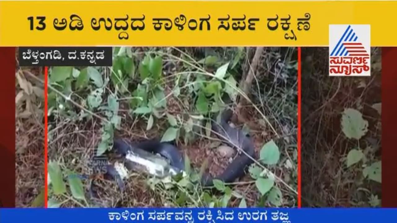 ಬೇಲಿಯಲ್ಲಿ ಸಿಕ್ಕಿ ಹಾಕಿಕಂಡಿದ್ದ ಕಾಳಿಂಗ ಸರ್ಪವನ್ನು ರಕ್ಷಿಸಿ ಚಾರ್ಮಾಡಿ ಘಾಟ್’ಗೆ ಬಿಟ್ಟ ಘಟನೆ ಬೆಳ್ತಂಗಡಿ ತಾಲೂಕಿನ ಸವಣಾಲುನಲ್ಲಿ ನಡೆದಿದೆ. ಉರಗ ತಜ್ಞ ಕಾಳಿಂಗ ಸರ್ಪವನ್ನು ಹೊರ ತೆಗೆಯುವುದನ್ನು ನೋಡಲು ನೂರಾರು ಜನ ಸೇರಿದ್ದರು.