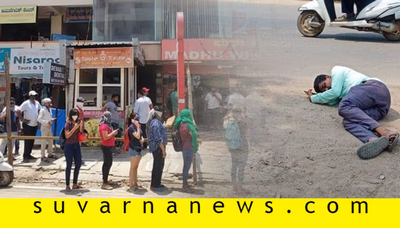 ನಗರದ ಕಸ್ತೂರ ಬಾ ರಸ್ತೆಯಲ್ಲಿರುವ ಟಾನಿಕ್ ಹೆಸರಿನ ಮದ್ಯದಂಗಡಿಯಲ್ಲಿ ಎಣ್ಣೆ ಖರೀದಿಸಲು ತಿಂಡಿಯನ್ನು ತಿನ್ನದೆ ಯುವತಿಯೊಬ್ಬಳು ಸರತಿ ಸಾಲಿನಲ್ಲಿ ನಿಂತಿದ್ದಳು. ಆದರೆ ಬಿಸಿಲು ಹೆಚ್ಚಾಗಿದ್ದರಿಂದ ಎಣ್ಣೆ ಖರೀದಿಸುವ ಮುನ್ನವೇ ಕ್ಯೂನಲ್ಲೇ ತಲೆ ತಿರುಗಿ ಬಿದ್ದಿದ್ದಾಳೆ.