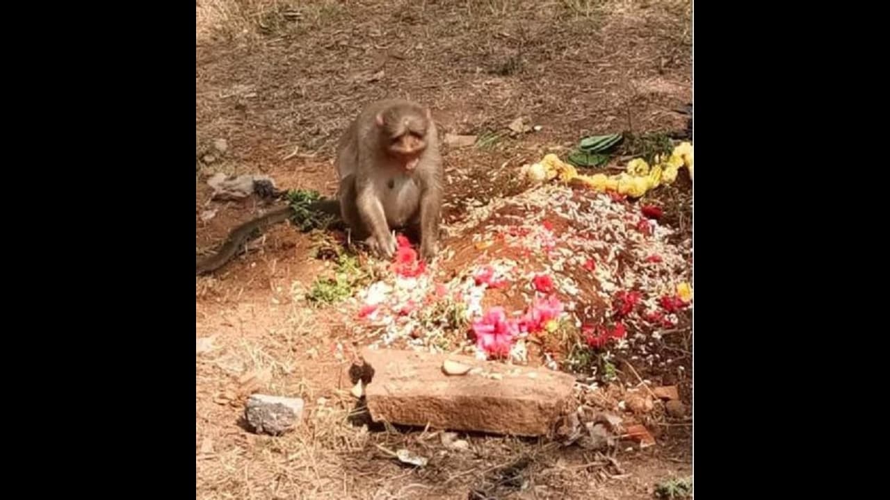 ಮೃತ ಮಂಗನ ಅಂತ್ಯ ಸಂಸ್ಕಾರದ ಬಳಿಕವೂ ಸಮಾಧಿ ಬಳಿ ಕುಳಿತ ಮಂಗನ ಸಂಗಾತಿ ಕಣ್ಣೀರಿಡುತ್ತಿದೆ. ಹೃದಯ ವಿದ್ರಾವಕ ಘಟನೆಗೆ ಸಾಕ್ಷಿಯಾಗಿದೆ ಗಂಜಾಮ್ ಆಟೋ ನಿಲ್ದಾಣ. 11 ನೇ ದಿನಕ್ಕೆ ಮೃತ ಮಂಗನ ತಿಥಿ ಆಚರಿಸಲು ಆಟೋ ಚಾಲಕರು ನಿರ್ಧರಿಸಿದ್ದಾರೆ.