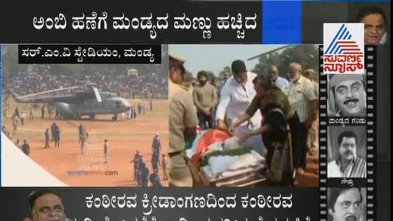 ಹುಟ್ಟೂರು ಮಂಡ್ಯಕ್ಕೆ ಅಂಬಿ ಅಂತಿಮ ವಿದಾಯ ಹೇಳಿದ್ದಾರೆ. ಕೊನೆಯದಾಗಿ ಮಂಡ್ಯದ ಮಣ್ಣನ್ನು ತಂದೆಯ ಹಣೆಗೆ ಹಚ್ಚಿದ್ದಾರೆ ಅಭಿಷೇಕ್. ಪತ್ನಿ ಸುಮಲತಾ ಕೂಡಾ ಜೊತೆಗಿದ್ದರು. ಮಣ್ಣನ್ನು ಹಣೆಗೆ ಹಚ್ಚುತ್ತಿದ್ದಂತೆ ಇಡೀ ಮಂಡ್ಯದ ಜನತೆ ಕಣ್ಣೀರಾಗಿದ್ದಾರೆ. ಭಾವಪೂರ್ಣ ಕ್ಷಣಕ್ಕೆ ವಿಶ್ವೇಶ್ವರಯ್ಯ ಕ್ರೀಡಾಂಗಣ ಸಾಕ್ಷಿಯಾಯ್ತು.
