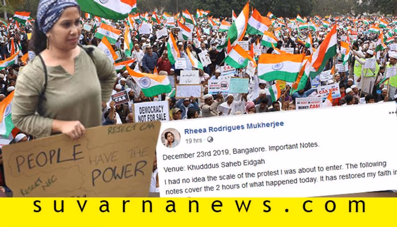 ಪೌರತ್ವ ತಿದ್ದುಪಡಿ ಕಾಯ್ದೆಯನ್ನು ವಿರೋಧಿಸಿ ಬೆಂಗಳೂರಿನಲ್ಲಿ ಮುಸ್ಲಿಮ್ ಸಂಘಟನೆಗಳು ಬೃಹತ್ ಪ್ರತಿಭಟನೆಯನ್ನು ಹಮ್ಮಿಕೊಂಡಿದ್ದವು. ಬಹುತೇಕ ಪುರುಷರೇ ತುಂಬಿಕೊಂಡಿದ್ದ ಈ ಪ್ರತಿಭಟನೆಯಲ್ಲಿ, ಸಪೋರ್ಟ್ ಮಾಡಲು ಮುಸ್ಲಿಮೇತರ ಮಹಿಳೆಯೊಬ್ಬರು ಭಾಗವಹಿಸಿದ್ದರು. ಈ ಮಹಿಳೆ ಪ್ರತಿಭಟನೆ ಒಳಗಿನ ಘಟನೆ ಬಿಚ್ಚಿಟ್ಟಿದ್ದಾರೆ.
