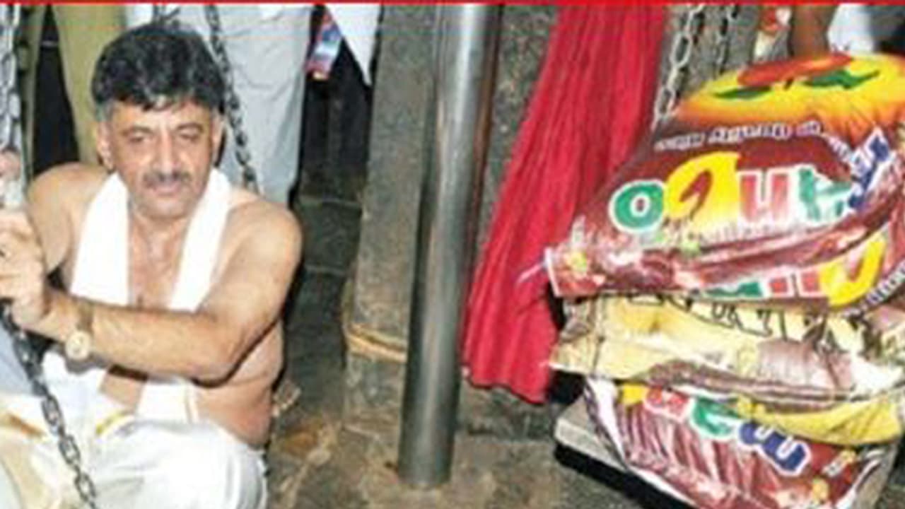 ಸುಬ್ರಹ್ಮಣ್ಯ(ಸೆ.25): ರಾಜ್ಯದ ಇಂಧನ ಸಚಿವ ಡಿ.ಕೆ. ಶಿವಕುಮಾರ್ ಭಾನುವಾರ ಪುಣ್ಯಕ್ಷೇತ್ರ ಕುಕ್ಕೆ ಸುಬ್ರಹ್ಮಣ್ಯದಲ್ಲಿ ತುಲಾಭಾರ ಸೇವೆ ನೆರವೇರಿಸಿದರು. ಶ್ರೀ ಕ್ಷೇತ್ರಕ್ಕೆ ಬೆಳಗ್ಗೆ ಕುಟುಂಬ ಸಮೇತರಾಗಿ ಆಗಮಿಸಿದ ಅವರು ಶ್ರೀ ದೇವಳದಲ್ಲಿ ವಿಶೇಷ ಪೂಜೆ ಸಲ್ಲಿಸಿದರು. ಅವರೊಂದಿಗೆ ಅವರ ಮಕ್ಕಳಾದ ಐಶ್ವರ್ಯ, ಆಭರಣ ಹಾಗೂ ಆಕಾಶ್ ಕೂಡಾ ತುಲಾಭಾರ ಸೇವೆ ನೆರವೇರಿಸಿದರು. ಈ ಸಂದರ್ಭದಲ್ಲಿ ಶಿವಕುಮಾರ್ ಅವರ ಪತ್ನಿ ಉಷಾ ಶಿವಕುಮಾರ್ ಉಪಸ್ಥಿತರಿದ್ದರು.