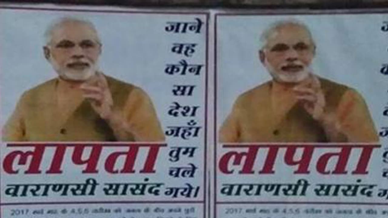 ಉತ್ತರಪ್ರದೇಶದ ವಾರಣಾಸಿಯ ರಸ್ತೆ ಬದಿಯ ಗೋಡೆಗಳ ಮೇಲೆ ನರೇಂದ್ರ ಮೋದಿ ನಾಪತ್ತೆಯಾಗಿದ್ದಾರೆ ಎಂಬ ಪೋಸ್ಟರ್ಸ್ ಅಂಟಿಸಲಾಗಿದೆ. ಇನ್ನು ಪ್ರಧಾನಿ ಮೋದಿಯ ತವರು ಕ್ಷೇತ್ರ ವಾರಣಾಸಿಯಲ್ಲೇ ಇಂತಹ ಪೋಸ್ಟರ್ಸ್'ಗಳು ಅಂಟಿಸಿರುವುದು ಅಚ್ಚರಿ ಮೂಡಿಸಿವೆ.