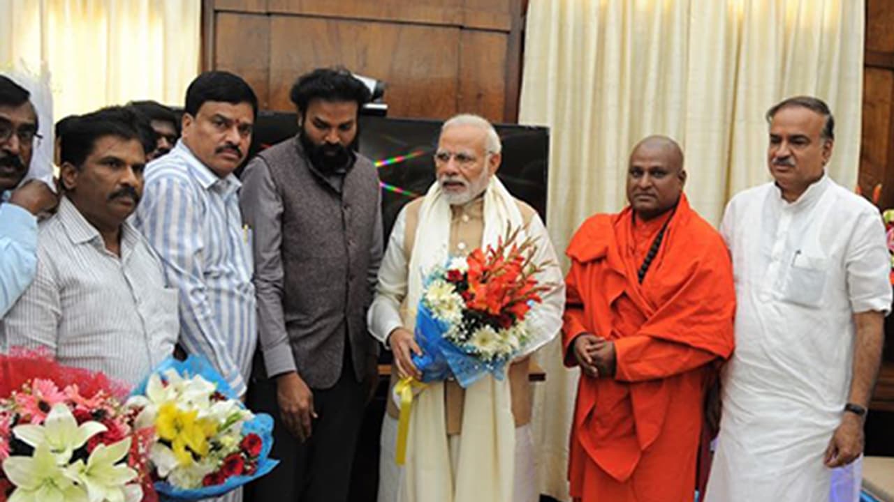 ಸಂಸತ್ ಭವನದಲ್ಲಿ ಕೇಂದ್ರ ಸಚಿವ ಅನಂತಕುಮಾರ್ ನೇತೃತ್ವದ ನಿಯೋಗದಿಂದ ಸನ್ಮಾನಿಸಿ ಧನ್ಯವಾದ ಸಲ್ಲಿಸಿದ್ದಾರೆ.