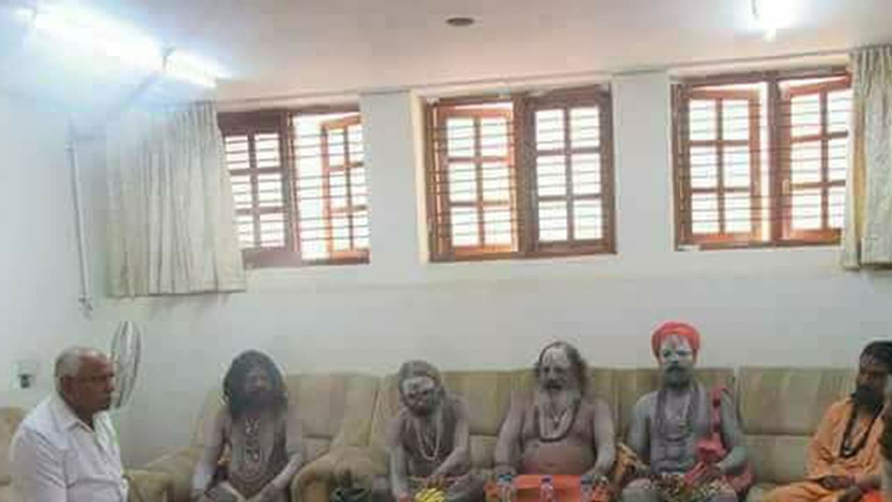 ಬೆಂಗಳೂರು(ಅ. 02): ದೇಶ ಪರ್ಯಟನೆಯಲ್ಲಿದ್ದ ನಾಗಾ ಸಾಧುಗಳು ಅನಿರೀಕ್ಷಿತವಾಗಿ ಬಿಎಸ್'ವೈ ನಿವಾಸಕ್ಕೆ ತೆರಳಿ ಅಚ್ಚರಿ ಹುಟ್ಟಿಸಿದ ಘಟನೆ ನಡೆದಿದೆ. ಇನ್ನೂ ಅಚ್ಚರಿ ಎಂದರೆ, ದೇವನಹಳ್ಳಿಯಿಂದ ಯಡಿಯೂರಪ್ಪನವರು ಬರುವವರೆಗೂ ಅವರ ಮನೆಯಲ್ಲೇ ಕಾದು ಕುಳಿತಿದ್ದರು. ಯಡಿಯೂರಪ್ಪನವರನ್ನು ಭೇಟಿಯಾಗಲೇಬೇಕೆಂದು ಗಲಾಟೆ ಮಾಡಿ ಅವರನ್ನ ಬೇಗ ಕರೆಸಿಕೊಂಡರು ನಾಗಾ ಸಾಧುಗಳು. ವಾರಾಣಸಿಯಿಂದ ಬಂದಿದ್ದ 20ಕ್ಕೂ ಹೆಚ್ಚು ಸಾಧುಗಳು ಬಿಎಸ್'ವೈ ನಿವಾಸದಲ್ಲಿ ವಿಶೇಷ ಪೂಜೆ ನೆರವೇರಿಸಿದರು. ಬಿಎಸ್'ವೈಗೆ ಆಶೀರ್ವಾದ ಮಾಡಿದ ಬಳಿಕವೇ ಹೊರಗೆ ಹೋಗಿದ್ದು.