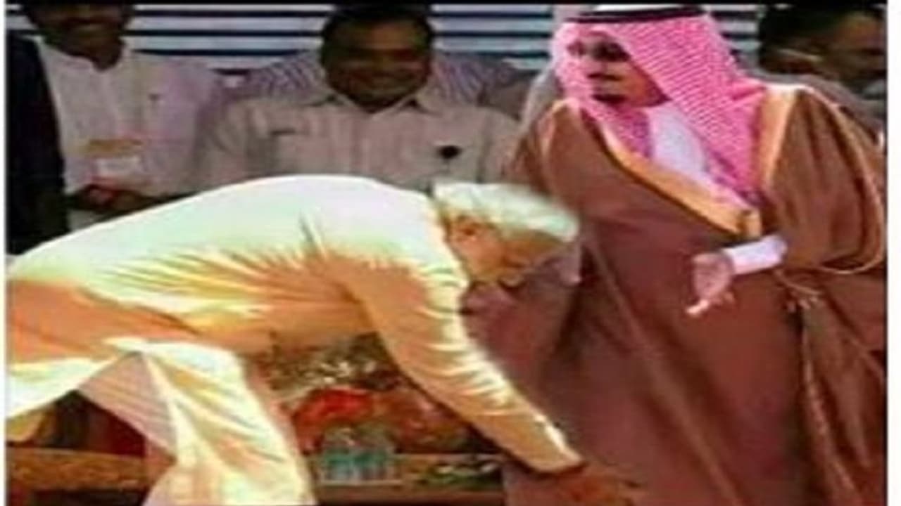 ಸೌದಿ ಅರೆಬಿಯಾದ ರಾಜ ಕಿಂಗ್ ಸಲ್ಮಾನ್ ಕಾಲಿಗೂ ಮೋದಿ ಬೀಳುವಂತೆ ಮಾಡಲಾಗಿದೆ. ಹಾಗಾದರೆ ಈ ಪೋಟೋದ ಅಸಲಿಯತ್ತು ಏನು? ಬಿಜೆಪಿ ಹಿರಿಯ ನಾಯಕ ಎಲ್ ಕೆ ಅಡ್ವಾಣಿ ಕಾಲಿಗೆ ಮೋದಿ 2013ರಲ್ಲಿ ಎರಗಿದ್ದರು. ಭೋಪಾಲ್ನಲ್ಲಿ ನಡೆದ ಕಾರ್ಯಕ್ರಮವೊಂದರ ಚಿತ್ರ ಇದು.