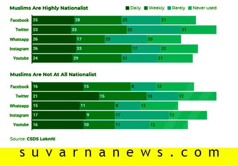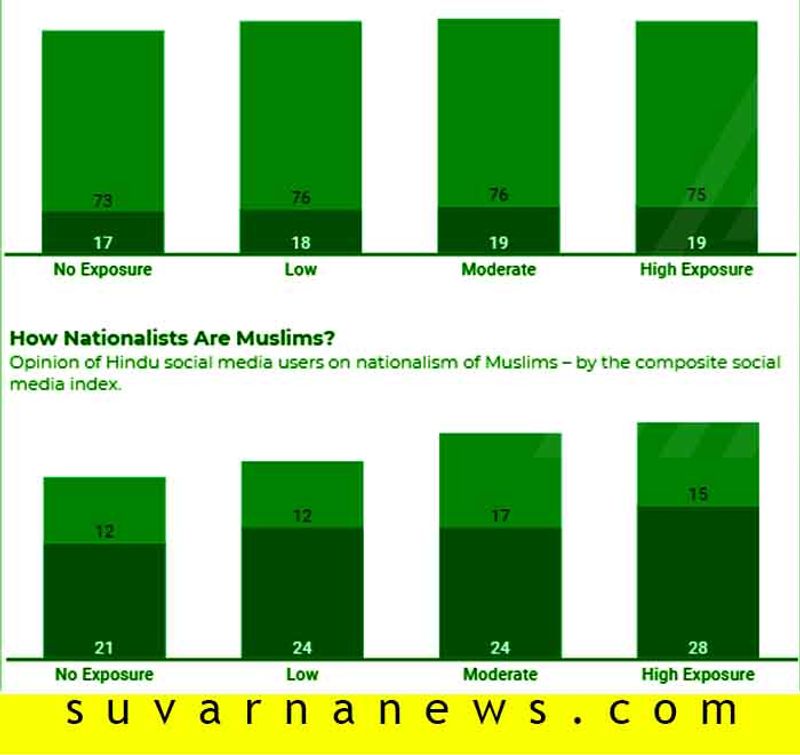 ಅಧ್ಯಯನದಲ್ಲಿ ಪಾಲ್ಗೊಂಡ ಸೋಶಿಯಲ್ ಮೀಡಿಯಾದ ಹಿಂದೂ ಬಳಕೆದಾರರು ಮುಸ್ಲಿಮರಲ್ಲಿ ಅತಿ ಹೆಚ್ಚು ರಾಷ್ಟ್ರಪ್ರೇಮ ಇದೆ ಎಂಬ ಅಭಿಪ್ರಾಯ ವ್ಯಕ್ತಪಡಿಸಿದ್ದಾರೆ.