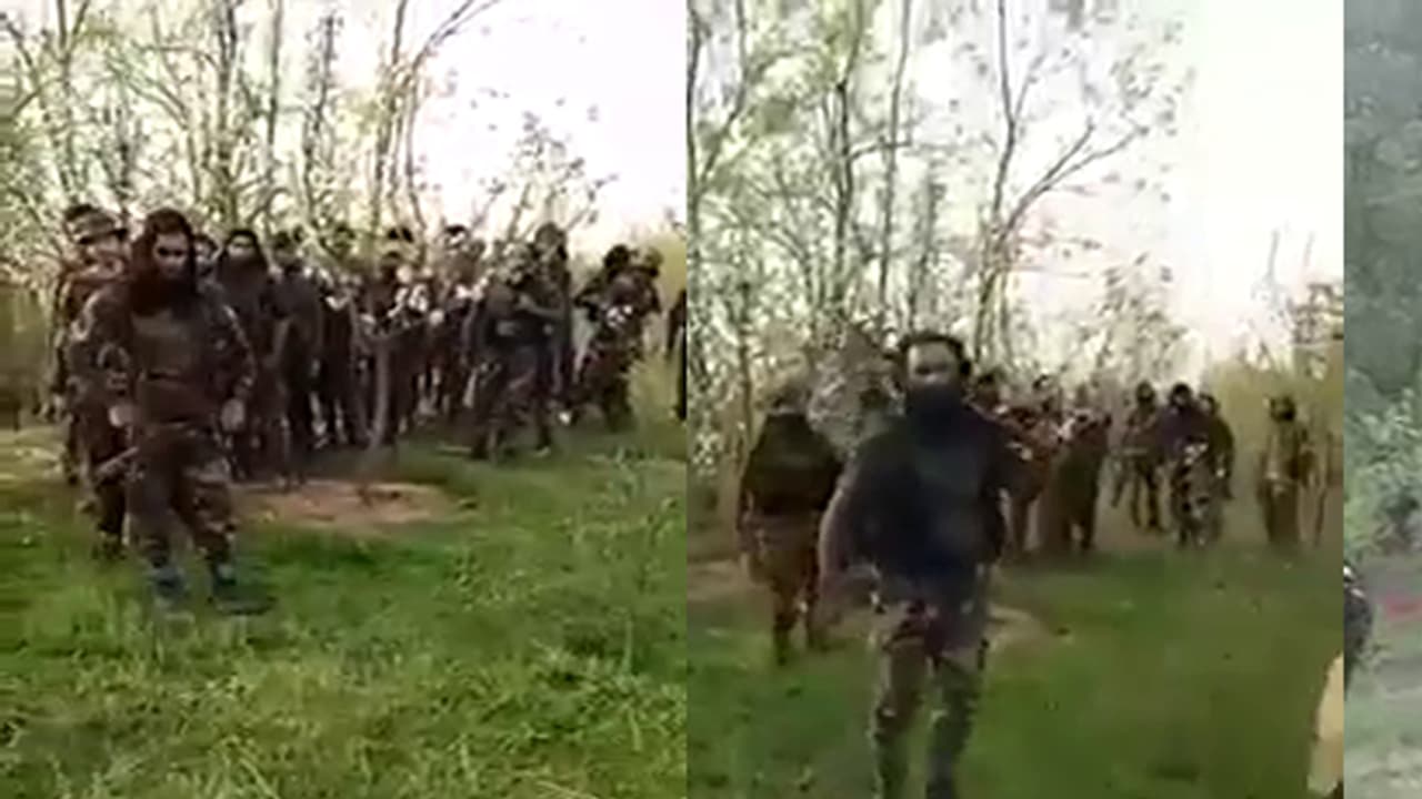 30ಕ್ಕೂ ಹೆಚ್ಚು ಉಗ್ರರು ಸೇನಾ ಸಮವಸ್ತ್ರದಲ್ಲಿ ಕಾಣಿಸಿಕೊಂಡ ವಿಡಿಯೋ ಒಂದು ಸಾಮಾಜಿಕ ಜಾಲಾತಾಣಗಳಲ್ಲಿ ವೈರಲ್ ಆಗುತ್ತಿದೆ. ಕಾಶ್ಮೀರದ ಅಜ್ಞಾತ ಸ್ಥಳವೊಂದರಲ್ಲಿ ಉಗ್ರರು ಪರೇಡ್ ನಡೆಸುತ್ತಿರುವ ದೃಶ್ಯಗಳು ಈ ವಿಡಿಯೋದಲ್ಲಿ ಸೆರೆಯಾಗಿವೆ.