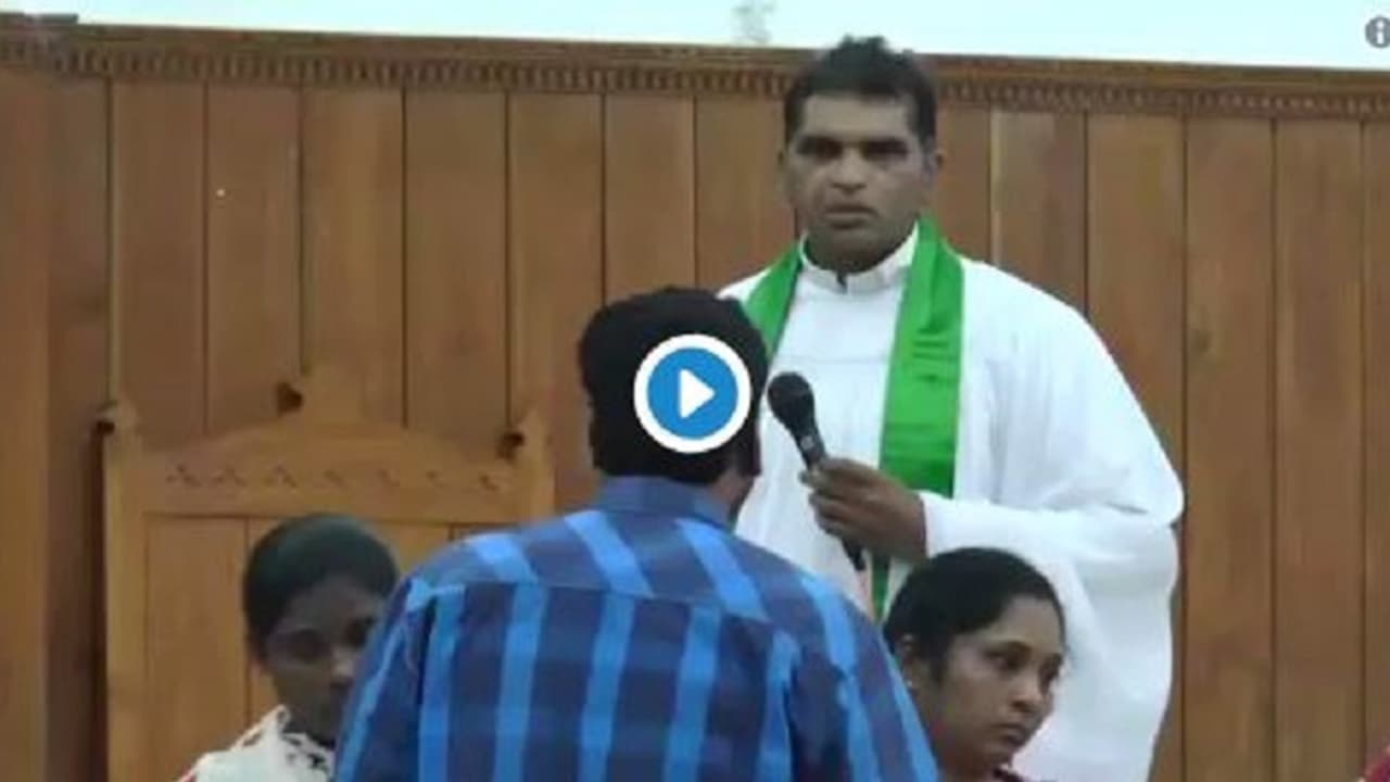 ಬಿಜೆಪಿ ಮುಖಂಡನೊಬ್ಬ ಬೆಂಗಳೂರಿನ ಚಚ್ರ್ನಲ್ಲಿ ಪಾದ್ರಿಗೆ ಥಳಿಸಿದ್ದಾನೆ’ ಎನ್ನುವ ಸಂದೇಶವಿರುವ ವಿಡಿಯೋವೊಂದು ಸಾಮಾಜಿಕ ಮಾಧ್ಯಮಗಳಲ್ಲಿ ಹರಿದಾಡುತ್ತಿದೆ. ವಿಡಿಯೋದಲ್ಲಿ ಪಾದ್ರಿ ಮತ್ತು ಒಬ್ಬ ನೀಲಿ ಬಣ್ಣದ ಶರ್ಟ್ ಧರಿಸಿರುವ ವ್ಯಕ್ತಿಯ ನಡುವೆ ಮಾತಿನ ಚಕಮಕಿ ನಡೆಯುತ್ತದೆ. ಬಳಿಕ ವ್ಯಕ್ತಿಯು ಪಾದ್ರಿ ಮೇಲೆ ಹಲ್ಲೆಗೆ ಮುಂದಾಗಿ ಕೊರಳಪಟ್ಟಿಹಿಡಿದು ಕಪಾಳಕ್ಕೆ ಥಳಿಸುತ್ತಾನೆ. ನಂತರ ಚಚ್ರ್ನಲ್ಲಿ ನೆರೆದಿದ್ದ ಜನರು ಗುಂಪು ಕಟ್ಟಿಕೊಂಡು ಘಟನೆಯನ್ನು ನಿಯಂತ್ರಣಕ್ಕೆ ತರಲು ಯತ್ನಿಸುತ್ತಾರೆ.
