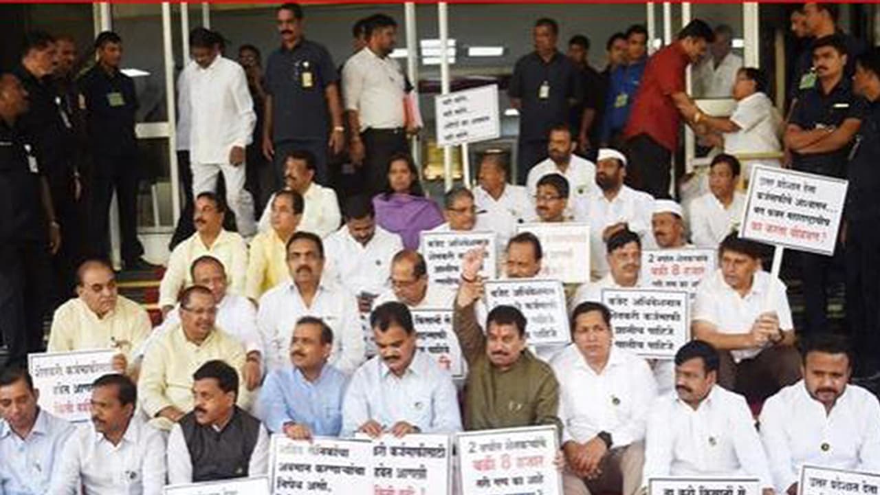 ಆಡಳಿತರೂಢ ಭಾರತೀಯ ಜನತಾ ಪಕ್ಷವು ಆಯವ್ಯಯ ಮಂಡಿಸುತ್ತಿದ್ದ ಸಮಯದಲ್ಲಿ ಕಾಂಗ್ರೆಸ್ - ಎನ್'ಸಿಪಿ ಮೈತ್ರಿಕೂಟದ ವಿರೋಧ ಪಕ್ಷದ ಶಾಸಕರು ಬಜೆಟ್ ಮಂಡನೆಗೆ ತೊಂದರೆ ನೀಡುತ್ತಿದ್ದರು. ಗದ್ದಲ ಹೆಚ್ಚಾದ ಕಾರಣ ಅಧಿವೇಶನನ್ನು ಮುಂದೂಡಿ 19 ಶಾಸಕರನ್ನು ಸ್ಪೀಕರ್ ಅಮಾನತುಗೊಳಿಸಿದ್ದಾರೆ. ಅಮಾನತು ಕ್ರಮವನ್ನು ಅಸಂವಿಧಾನ ಕ್ರಮವೆಂದು ಖಂಡಿಸಿರುವ ಶಾಸಕರು ವಿಧಾನಸೌಧದ ಮುಂಭಾಗ ಪ್ರತಿಭಟನೆ ನಡೆಸಿದ್ದು, ರಾಜ್ಯಪಾಲ ಸಿ.ವಿದ್ಯಾಸಾಗರ್ ಅವರಿಗೂ ದೂರು ನೀಡುವುದಾಗಿ ತಿಳಿಸಿದ್ದಾರೆ.
