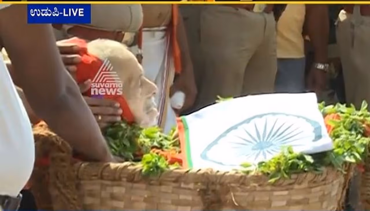 ಮಹಾಸಂತ ಪೇಜಾವರ ಶ್ರೀ ವಿಶ್ವೇಶ ತೀರ್ಥ ಸ್ವಾಮಿಜಿ ಅಸ್ತಂಗತರಾಗಿದ್ದು, ಅವರ ಪಾರ್ಥೀವ ಶರೀರಕ್ಕೆ ಉಡುಪಿಯಲ್ಲಿ ಸಕಲ ಸರ್ಕಾರಿ ಗೌರವಗಳನ್ನು ಸಲ್ಲಿಸಲಾಯಿತು. ಸಿಎಂ ಬಿಎಸ್ ಯಡಿಯೂರಪ್ಪ ಸರ್ಕಾರಿ ಗೌರವದ ಮೂಲಕ ಅಂತಿನ ನಮನ ಸಲ್ಲಿಸಿದರು.