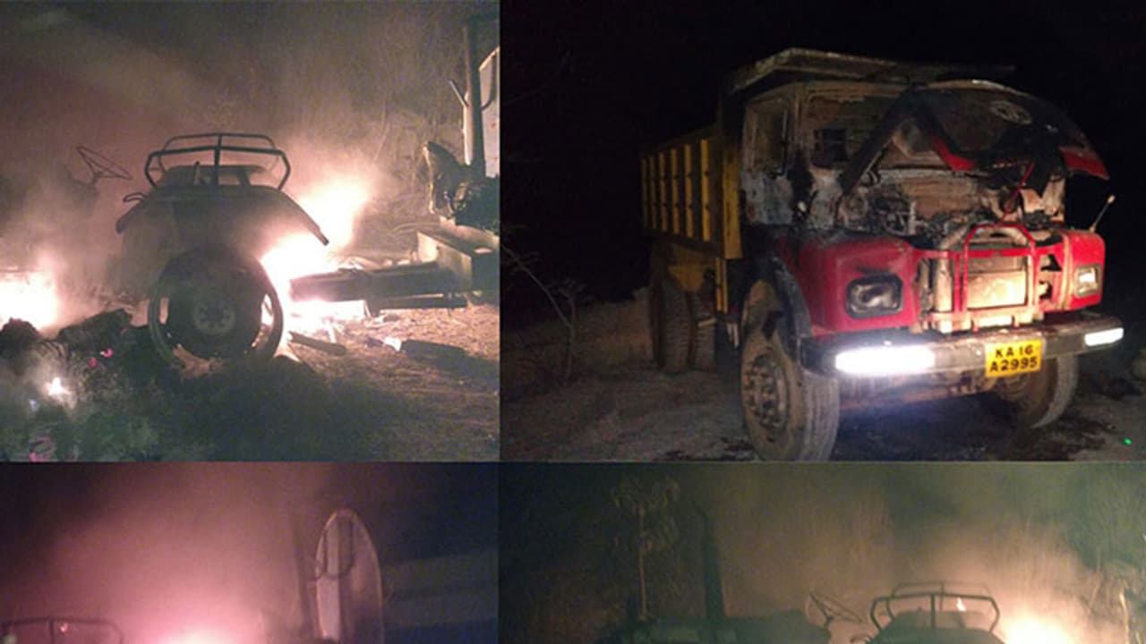 ಚಿತ್ರದುರ್ಗ(ಜ.30): ಕಲ್ಲು ಗಣಿಗಾರಿಕೆಯಿಂದ ಮನೆಗಳ ಗೋಡೆಗಳಲ್ಲಿ ಬಿರುಕು ಕಾಣಿಸಿಕೊಂಡ ಪರಿಣಾಮವಾಗಿ ಆಕ್ರೋಶಗೊಂಡ ಗ್ರಾಮಸ್ಥರು 10ಕ್ಕೂ ಹೆಚ್ಚು ಲಾರಿಗಳಿಗೆ ಬೆಂಕಿ ಹಚ್ಚಿದ್ದಾರೆ.