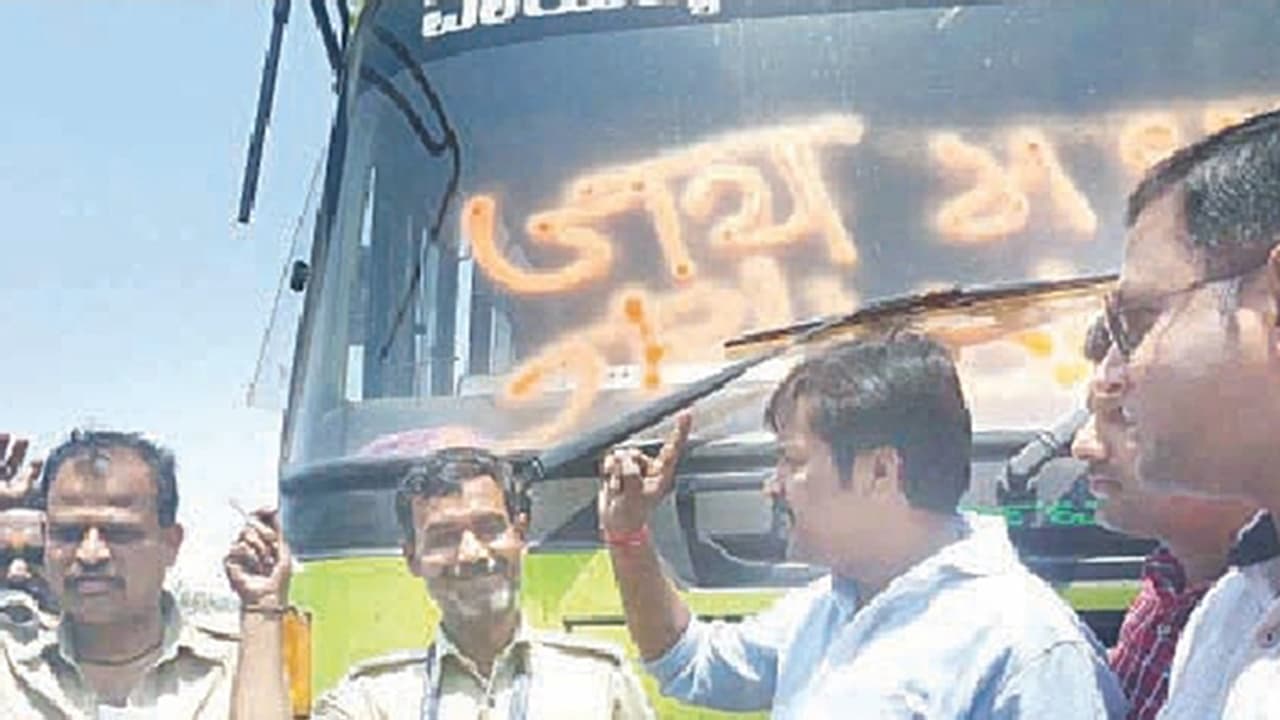 ಕೊಲ್ಹಾಪುರದಲ್ಲಿ ಮಂಗಳವಾರದಂದು ದಿಢೀರ್‌ ಆಗಿ ರಸ್ತೆಗಿಳಿದ ಶಿವಸೇನೆ ಕಾರ್ಯಕರ್ತರು ಕೊಲ್ಹಾಪುರ ಬಸ್‌ ನಿಲ್ದಾಣದಲ್ಲಿ ಪ್ರತಿಭಟನೆ ನಡೆಸಿದರು. ಅಲ್ಲಿ ನಿಲುಗಡೆಯಾಗಿದ್ದ ಕೆಎಸ್‌ಆರ್‌ಟಿಸಿ ಬಸ್‌ ಒಂದರಿಂದ ನಿರ್ವಾಹಕ, ಚಾಲಕರಿಬ್ಬರನ್ನೂ ಕೆಳಗಿಳಿಸಿ ಇಬ್ಬರಿಂದಲೂ ‘ಜೈ ಮಹಾರಾಷ್ಟ್ರ', ‘ಛತ್ರಪತಿ ಶಿವಾಜಿ ಮಹಾರಾಜ್‌ ಕೀ ಜೈ' ಎಂಬ ಘೋಷಣೆ ಕೂಗಿಸಿದ್ದಾರೆ.