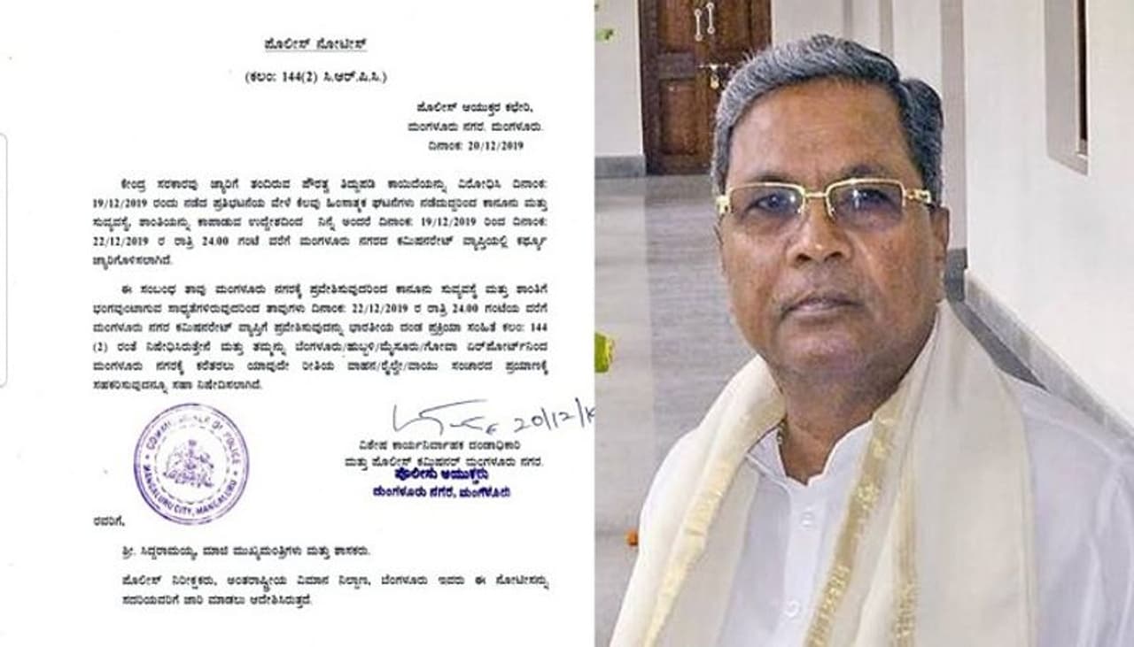 ಗಲಭೆಪೀಡಿತ ನಗರಕ್ಕೆ ಭೇಟಿ ನೀಡಲು ಮುಂದಾಗಿರುವ ವಿಧಾನಸಭೆ ವಿರೋಧ ಪಕ್ಷದ ನಾಯಕ ಸಿದ್ದರಾಮಯ್ಯ ಅವರಿಗೆ ಮಂಗಳೂರು ಪೊಲೀಸ್ ಆಯುಕ್ತರು ನೋಟಿಸ್ ನೀಡಿದ್ದಾರೆ. ರಸ್ತೆ , ರೈಲು, ವಾಯುಯಾನದ ಮುಖಾಂತರ ಮಂಗಳೂರಿಗೆ ಬರುವಂತಿಲ್ಲ ಎಂದು ಉಲ್ಲೇಖಿಸಿ ನೊಟೀಸ್ ನೀಡಲಾಗಿದೆ.
