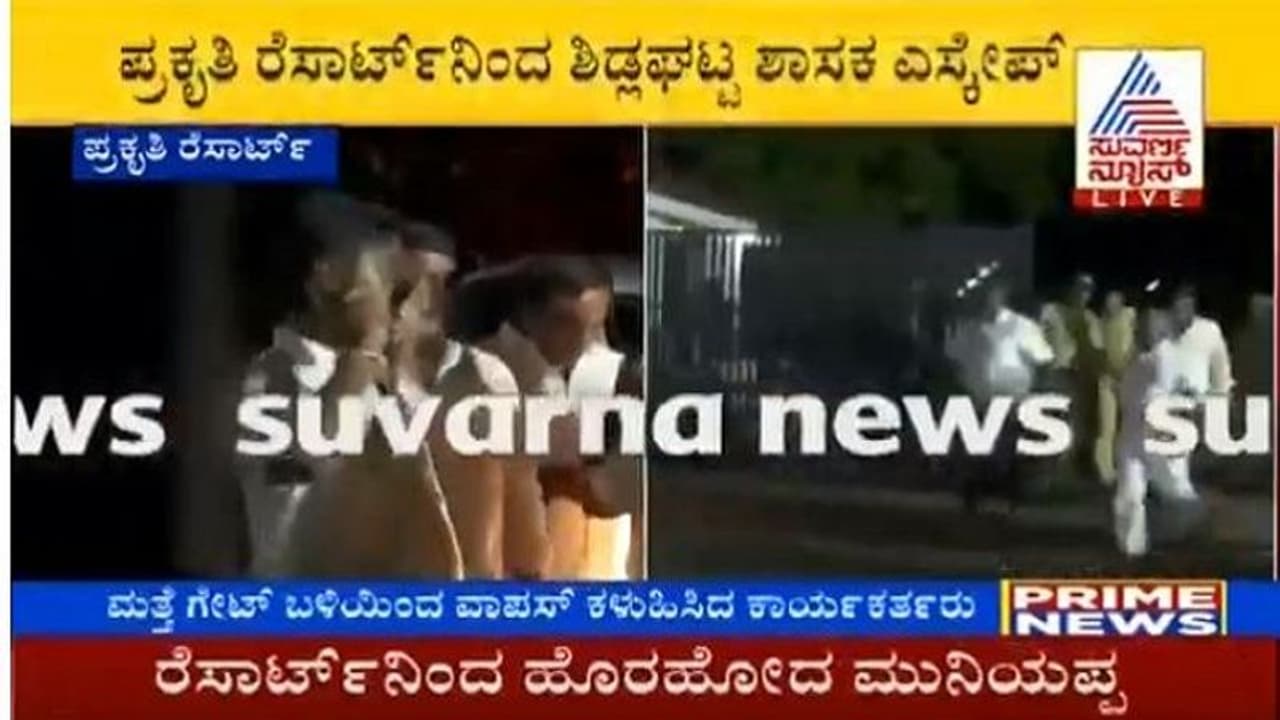 ರೆಸಾರ್ಟ್ ನಲ್ಲಿಯೇ ಉಳಿದುಕೊಂಡಿದ್ದ ಕಾಂಗ್ರೆಸ್ ಶಾಸಕರೊಬ್ಬರು ನೈಟ್ ಡ್ರೆಸ್ ನಲ್ಲಿಯೇ ಎಸ್ಕೇಪ್ ಆಗಿದ್ದಾರೆ. ಸಿನಿಮೀಯ ರೀತಿಯಲ್ಲಿ ಶಿಡ್ಲುಘಟ್ಟ ಶಾಸಕ ಮುನಿಯಪ್ಪ ಎಸ್ಕೇಪ್ ಆಗಿದ್ದಾರೆ. ಈಗ ಮುನಿಯಪ್ಪ ಎಲ್ಲಿಗೆ ಹೋಗಿದ್ದಾರೆ ಎಂಬ ಪ್ರಶ್ನೆ ಎದ್ದಿದೆ.