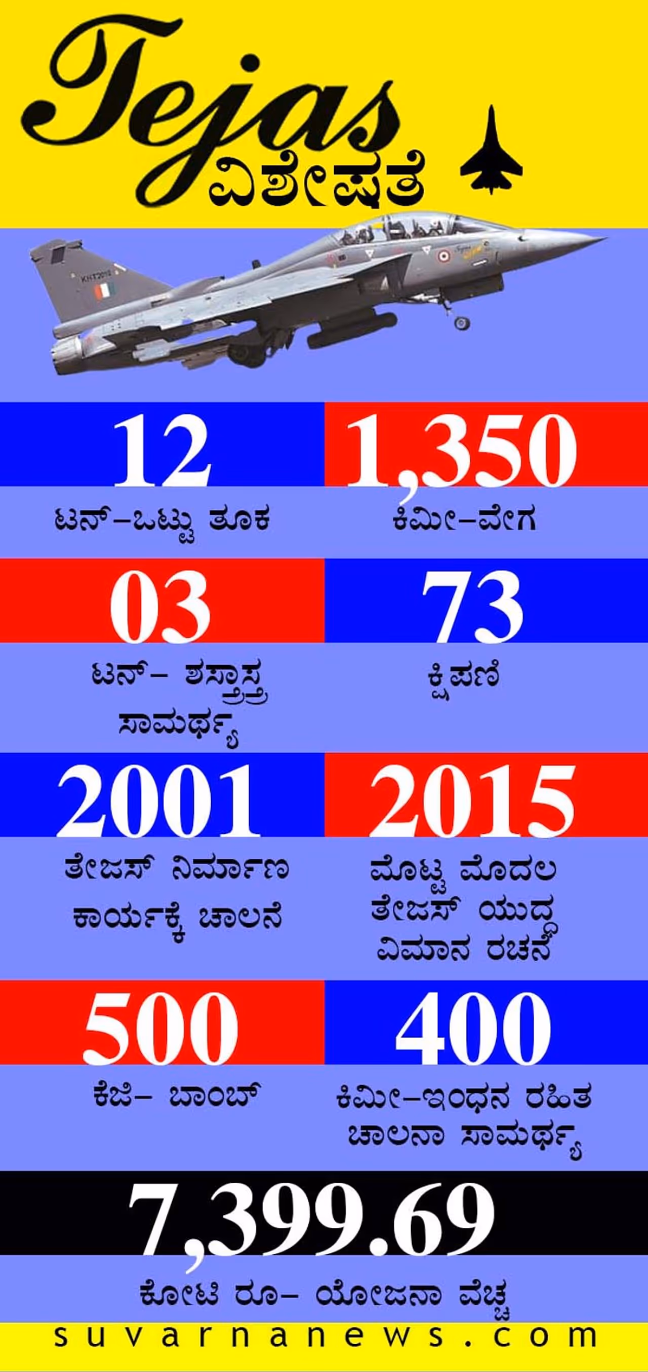DRDO ನಿರ್ಮಿತ ಸ್ವದೇಶಿ ಲಘು ಯುದ್ಧ ವಿಮಾನ ತೇಜಸ್ನ ವಿಶೇಷತಗಳು ಹಾಗೂ ಯುದ್ಧ ವಿಮಾನದ ನಿರ್ಮಾಣ ವೆಚ್ಚದ ಕುರಿತಾ ಸಂಪೂರ್ಣ ಮಾಹಿತಿ ಇಲ್ಲಿದೆ.