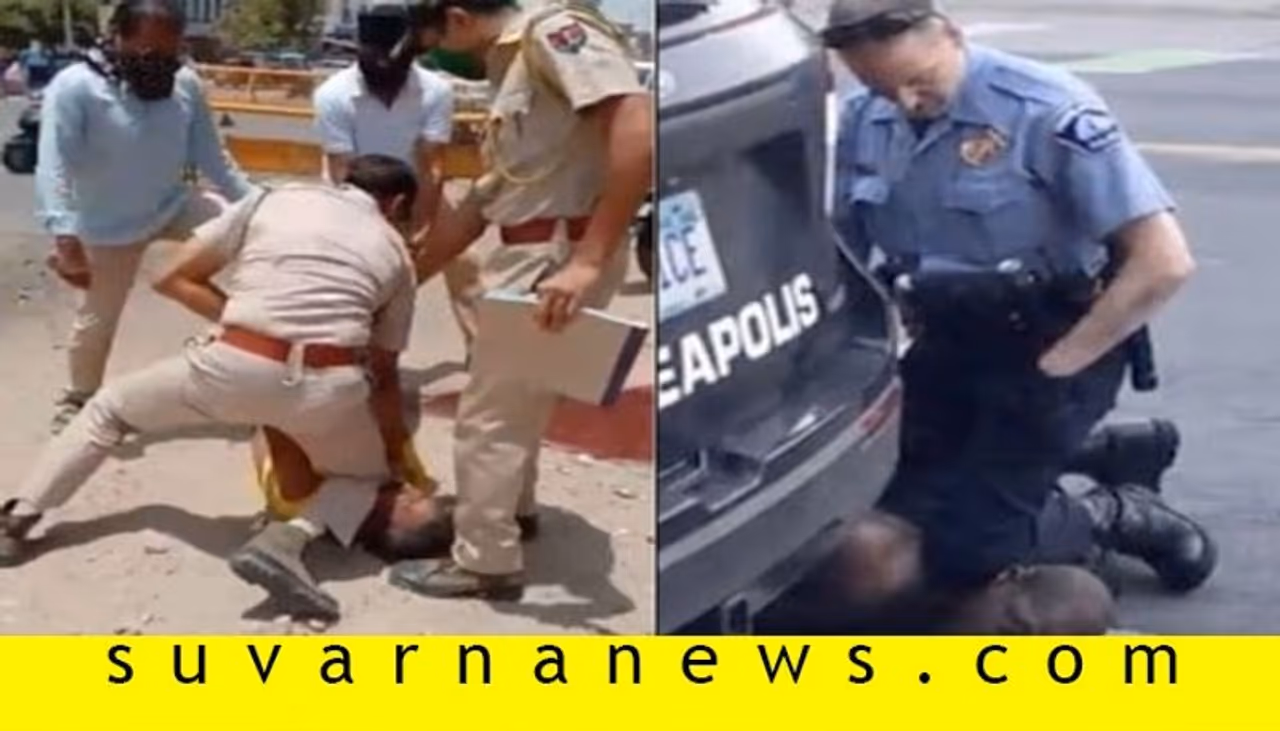 ವ್ಯಕ್ತಿ ಕುತ್ತಿಗೆಯನ್ನು ಮಂಡಿಯಿಂದ ಅದುಮಿದ ಪೊಲೀಸ್ ಪೇದೆ!