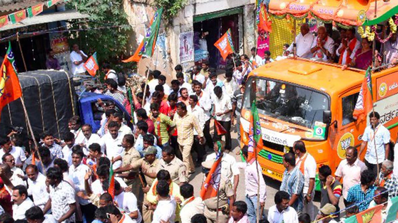 ತುಮಕೂರು (ನ.03): ಬಿಜೆಪಿ ಪರಿವರ್ತನಾ ಯಾತ್ರೆ ರಥಕ್ಕೆ ಕಲ್ಲು ತೂರಿದ ಘಟನೆ ತುಮಕೂರಿನಲ್ಲಿ ನಡೆದಿದೆ.