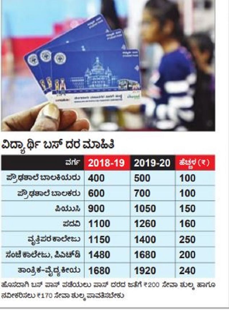 ಪ್ರೌಢಶಾಲೆ, ಪದವಿ ಪೂರ್ವ ಕಾಲೇಜು, ಪದವಿ, ಸ್ನಾತಕೋತ್ತರ ಪದವಿ, ವೃತ್ತಿಪರ ಕೋರ್ಸ್ಗಳ ವಿದ್ಯಾರ್ಥಿಗಳ ಬಸ್ ಪಾಸ್ ದರ ಏರಿಕೆ ಮಾಡಲಾಗಿದೆ. ಪ್ರೌಢಶಾಲಾ ಬಾಲಕಿಯರ ಬಸ್ ಪಾಸ್ ದರವನ್ನು .400 ರೂ.ರಿಂದ .500 ರೂ.ಗೆ ಹಾಗೂ ಬಾಲಕರ ಪಾಸ್ ದರವನ್ನು .600 ರೂ.ರಿಂದ .700 ರೂ.ಗೆ ಹೆಚ್ಚಿಸಿದೆ. ಪಿಯುಸಿ ವಿದ್ಯಾರ್ಥಿಗಳ ಬಸ್ ದರವನ್ನು .900 ರೂ. ರಿಂದ .1050 ರೂ. ಪದವಿ ವಿದ್ಯಾರ್ಥಿಗಳ ಪಾಸ್ ದರವನ್ನು .1100 ರೂ. ರಿಂದ .1260 ರೂ., ವೃತ್ತಿಪರ ಕಾಲೇಜುಗಳ ವಿದ್ಯಾರ್ಥಿಗಳ ಪಾಸ್ ದರ .1150 ರೂ.ರಿಂದ .1400 ರೂ. ತಾಂತ್ರಿಕ ಹಾಗೂ ವೈದ್ಯಕೀಯ ವಿದ್ಯಾರ್ಥಿಗಳ ಪಾಸ್ ದರ .1680 ರೂ, ರಿಂದ .1920 ರೂ. ಹಾಗೂ ಸಂಜೆ ಕಾಲೇಜು, ಪಿಎಚ್ಡಿ ವಿದ್ಯಾರ್ಥಿಗಳ ಪಾಸ್ ದರವನ್ನು .1480ರಿಂದ .1680ಕ್ಕೆ ಹೆಚ್ಚಳ ಮಾಡಲಾಗಿದೆ.