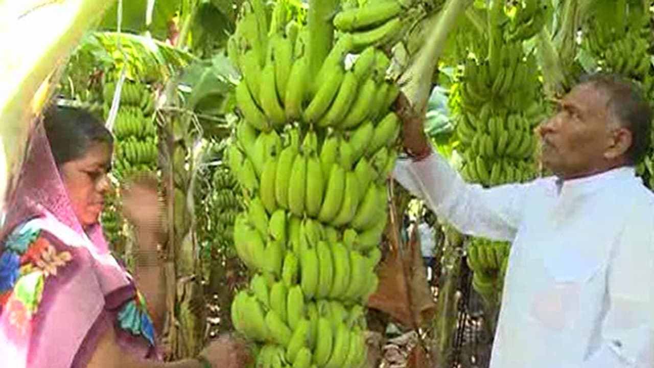 ಬಾಗಲಕೋಟೆ ಜಿಲ್ಲೆಯ ಮುಧೋಳ ತಾಲೂಕಿನ ಚಿಚಖಂಡಿ ಗ್ರಾಮದ ರೈತ ಸದಾಶಿವ ತೇಲಿಯವರ ತೋಟದಲ್ಲಿ ಎತ್ತ ನೋಡಿದರೂ ಬಾಳೆಗಿಡಗಳು ತೋರಣಗಳಂತೆ ಫಸಲು ತುಂಬಿ ನಿಂತಿವೆ.