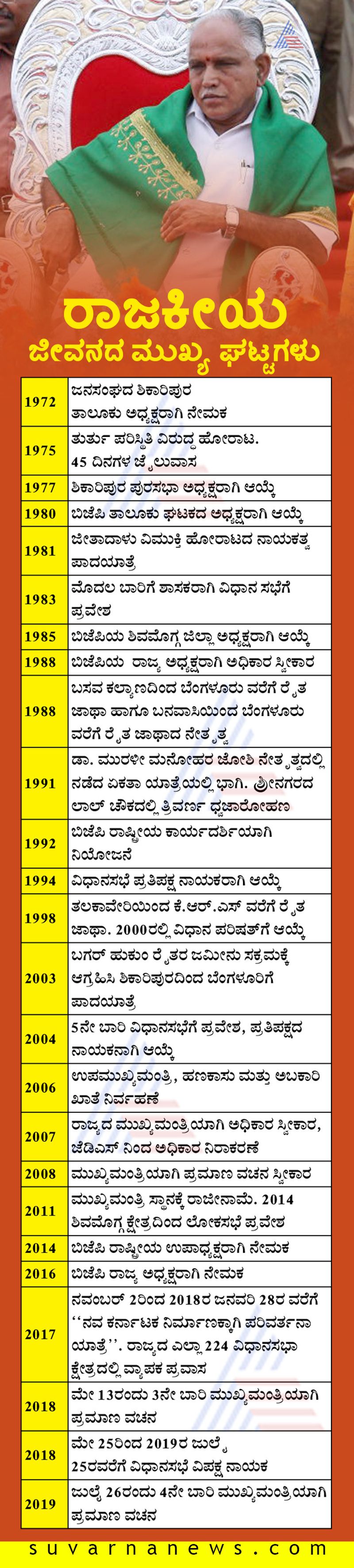 14 ತಿಂಗಳು ಕಾಲ ಅಧಿಕಾರ ನಡೆಸಿದ ಕುಮಾರಸ್ವಾಮಿ ನೇತೃತ್ವದ ಸರ್ಕಾರ ಜುಲೈ 23 ರಂದು ವಿಶ್ವಾಸ ಮತ ಕಳೆದುಕೊಂಡಿತ್ತು. ಈಗ ಬದಲಾದ ರಾಜಕಾರಣದ ವಾತಾವರಣದಲ್ಲಿ ಬಿ.ಎಸ್.ಯಡಿಯೂರಪ್ಪ ಸಿಎಂ ಆಗಿ ಪ್ರಮಾಣ ವಚನ ತೆಗೆದುಕೊಂಡಿದ್ದಾರೆ.