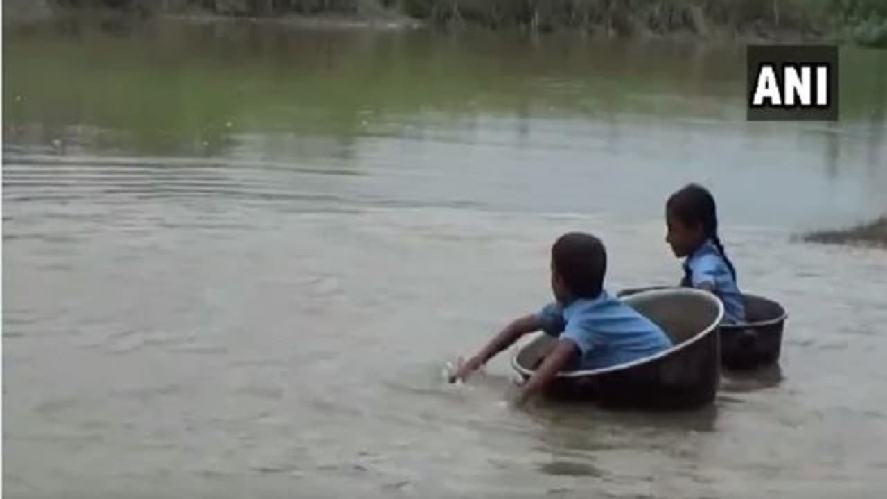 ನದಿಯೊಂದನ್ನು ದಾಟಿ ಶಾಲೆಗೆ ಹೋಗಬೇಕು. ಆದರೆ ಸೇತುವೆ ಭಾಗ್ಯ ಈ ಊರಿಗೆ ಇಲ್ಲ. ಅದರಿರಲಿ ದೋಣಿ, ತೆಪ್ಪ ಯಾವುದಾದರೂ ಇದೆಯೇ? ಅದು ಇಲ್ಲ. ಸದ್ಯ ಇವರಿಗೆ ಅಮ್ಯೂಮಿನಿಯಂ ಪಾತ್ರೆಯೆ ದೋಣಿ೦ತೆಪ್ಪ-ಸೇತುವೆ ಎಲ್ಲ.