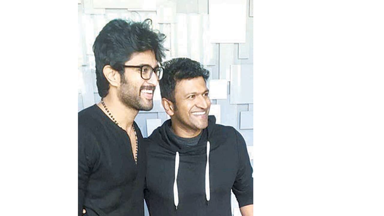 ಬೆಂಗಳೂರು (ಜ.23): ‘ಅರ್ಜುನ್ ರೆಡ್ಡಿ’ ಖ್ಯಾತಿಯ ವಿಜಯ್ ದೇವರಕೊಂಡ ಬೆಂಗಳೂರಿಗೆ ಬಂದು ಪವರ್ ಸ್ಟಾರ್ ಪುನೀತ್ ರಾಜ್‌ಕುಮಾರ್ ಅವರನ್ನು ಭೇಟಿ ಮಾಡಿದ್ದಾರೆ. ಸದ್ಯಕ್ಕೆ ಈ ಇಬ್ಬರು ನಟರ ಭೇಟಿಯ ಹಿಂದಿನ ಉದ್ದೇಶ ನಿಗೂಢವಾಗಿದೆ. ಇದೊಂದು ಸೌಹಾರ್ದಯುತ ಭೇಟಿ, ಖುಷಿಯಾಯಿತು ಅಂತ ವಿಜಯ್ ಸೋಷಲ್ ಮೀಡಿಯಾದಲ್ಲಿ ಹೇಳಿಕೊಂಡಿದ್ದಾರೆ.