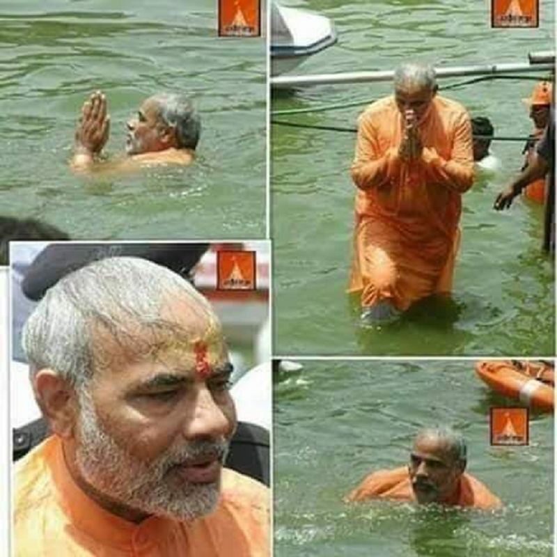 ಉತ್ತರ ಪ್ರದೇಶ (ಜ. 18): ಸಂಕ್ರಾಂತಿ ದಿನದಂದು ಉತ್ತರ ಪ್ರದೇಶದ ಕುಂಭ ಮೇಳದಲ್ಲಿ ನರೇಂದ್ರ ಮೋದಿ ಮಿಂದರು ಎಂದು ಹೇಳಲಾದ ಫೋಟೋಗಳು ಸಾಮಾಜಿಕ ಜಾಲತಾಣಗಳಲ್ಲಿ ಹರಿದಾಡುತ್ತಿವೆ.