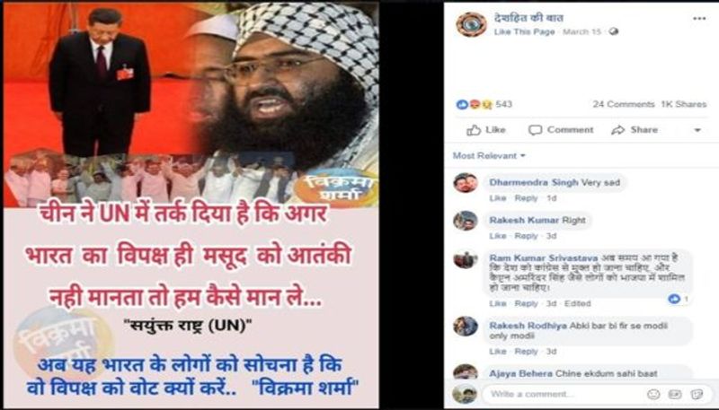 ಚೀನಾ ಅಧ್ಯಕ್ಷ ಕ್ಸಿ-ಜಿಪಿಂಗ್, ಮಸೂದ್ ಅಜರ್ ಮತ್ತು ವಿರೋಧ ಪಕ್ಷದ ನಾಯಕ ಕಾಮೆಂಟ್ನ ಈ ಮೂರು ಫೋಟೋಗಳನ್ನು ಸಂಕಲಿಸಿದ ಪೋಸ್ಟ್ ವೈರಲ್ ಆಗುತ್ತಿದೆ. ಈ ಪೋಸ್ಟ್ಗೆ ಫೇಸ್ಬುಕ್ನಲ್ಲಿ ಬಾರೀ ಕಾಮೆಂಟ್ಗಳು ವ್ಯಕ್ತವಾಗಿವೆ.