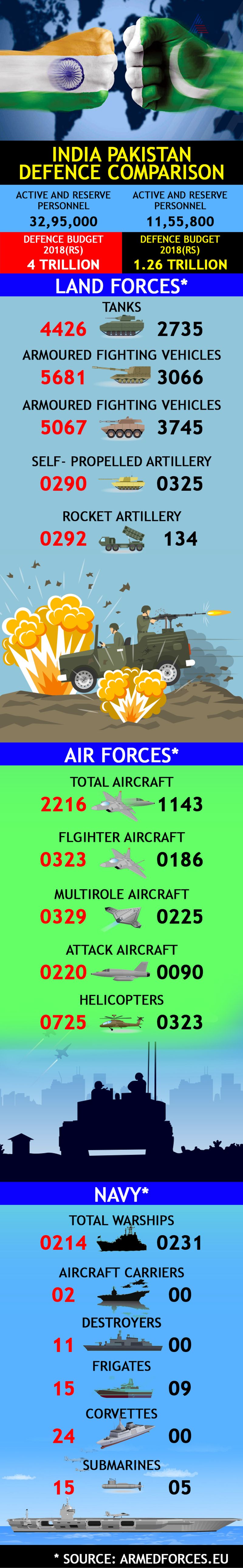 ಪುಲ್ವಾಮಾ ದಾಳಿಗೆ ತಕ್ಕ ಉತ್ತರ ನೀಡಿದ ಭಾರತ| ಪಾಕ್ ಆಕ್ರಮಿತ ಕಾಶ್ಮೀರಕ್ಕೆ ನುಗ್ಗಿ ಉಗ್ರರ ಚೆಂಡಾಡಿದ ವಾಯುಸೇನೆ| ಭಾರತದ ಪ್ರತ್ಯುತ್ತರಕ್ಕೆ ತತ್ತರಿಸಿ ಹೋದ ಪಾಕಿಸ್ತಾನ| ಭಾರತ ಮತ್ತು ಪಾಕಿಸ್ತಾನದ ನಡುವೆ ಹೆಚ್ಚಾದ ಯುದ್ಧ ಸಂಭಾವ್ಯತೆ| ಭಾರತದ ಸೈನ್ಯ ಶಕ್ತಿಯ ಮುಂದೆ ಏನೇನು ಅಲ್ಲ ಪಾಕಿಸ್ತಾನ| ಭಾರತ-ಪಾಕ್ ಸೈನ್ಯ ಶಕ್ತಿಯ ತುಲನಾತ್ಮಕ ನೋಟ|