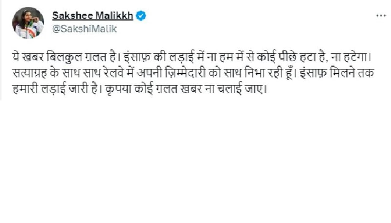 ಖ್ಯಾತ ಕುಸ್ತಿಪಟು ಸಾಕ್ಷಿ ಮಲಿಕ್ ಪ್ರತಿಭಟನೆ ಕೈಬಿಟ್ಟು ಭಾರತೀಯ ರೈಲ್ವೆಯಲ್ಲಿ ಉದ್ಯೋಗಿಯೂ ಅಗಿರುವ ತನ್ನ ಕೆಲಸಕ್ಕೆ ಹಾಜರಾಗಿದ್ದಾರೆ. ಇದೇ ರೀತಿ, ಇತರೆ ಇಬ್ಬರು ಕುಸ್ತಿಪಟುಗಳು ಸಹ ತಮ್ಮ ಸರ್ಕಾರಿ ಕೆಲಸಕ್ಕೆ ಹಾಜರಾಗಿದ್ದಾರೆ ಎಂದು ತಿಳಿದುಬಂದಿದೆ.