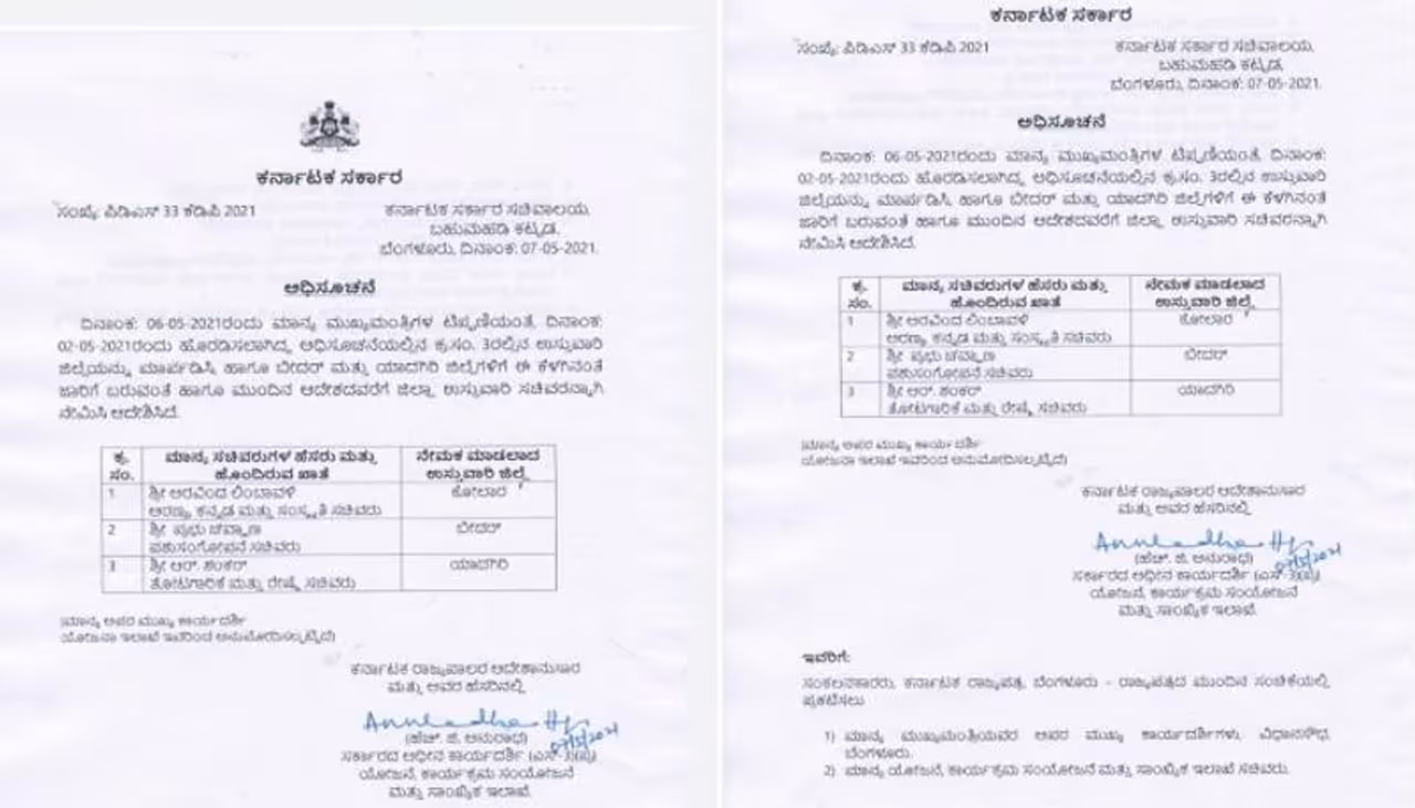 6 ಜಿಲ್ಲೆಗಳಿಗೆ ನೂತನ ಉಸ್ತುವಾರಿ : ಯಾರಿಗೆ ಯಾವ ಜಿಲ್ಲೆ..?