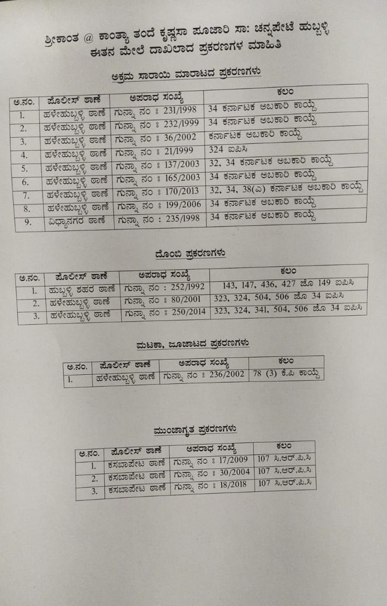 ಮುಂದುವರೆದು 'ಕಳೆದ 2023ನೇ ಸಾಲಿನಲ್ಲಿ ಹುಬ್ಬಳ್ಳಿ – ಧಾರವಾಡ ಕಮಿಷನರೇಟ್ ವ್ಯಾಪ್ತಿಯಲ್ಲಿ ಗಾಂಜಾ ಮಾರಾಟ, ಕಳ್ಳತನ, ಸುಲಿಗೆ, ವಂಚನೆ, ದೊಂಬಿ ಮುಂತಾದ ಅಪರಾಧ ಕೃತ್ಯಗಳಿಗೆ ಸಂಬಂಧಿಸಿದಂತೆ ಎಲ್.ಪಿ.ಸಿ ( ಕಾನೂನು ವಿಚಾರಣಾ ಪ್ರಮಾಣಪತ್ರ ) ಪ್ರಕರಣಗಳಲ್ಲಿ ಒಟ್ಟು 36 ಜನರನ್ನು ದಸ್ತಗಿರಿ ಮಾಡಲಾಗಿದೆ. ಇದರಲ್ಲಿ ಶ್ರೀಕಾಂತ ಪೂಜಾರಿ 32ನೆಯ ವ್ಯಕ್ತಿ. ಈತನನ್ನು ಕರಸೇವಕನೆಂಬ ಕಾರಣಕ್ಕೆ ಹೊರಗಡೆ ಬಿಡಬೇಕೋ? ಅಥವಾ ಆರೋಪಿ ಎಂಬ ಕಾರಣಕ್ಕೆ ಬಂಧಿಸಬೇಕೋ? ಬಿಜೆಪಿ ಪ್ರತಿಭಟನೆ ನಡೆಸುತ್ತಿರುವುದು ನಮ್ಮ ಸರ್ಕಾರದ ವಿರುದ್ಧವಲ್ಲ, ದೇಶದ ಕಾನೂನು ಮತ್ತು ಸಂವಿಧಾನದ ವಿರುದ್ಧ' ಎಂದು ತಮ್ಮ ಪೋಸ್ಟ್ ಮೂಲಕ ಕಿಡಿಕಾರಿದ್ದಾರೆ.