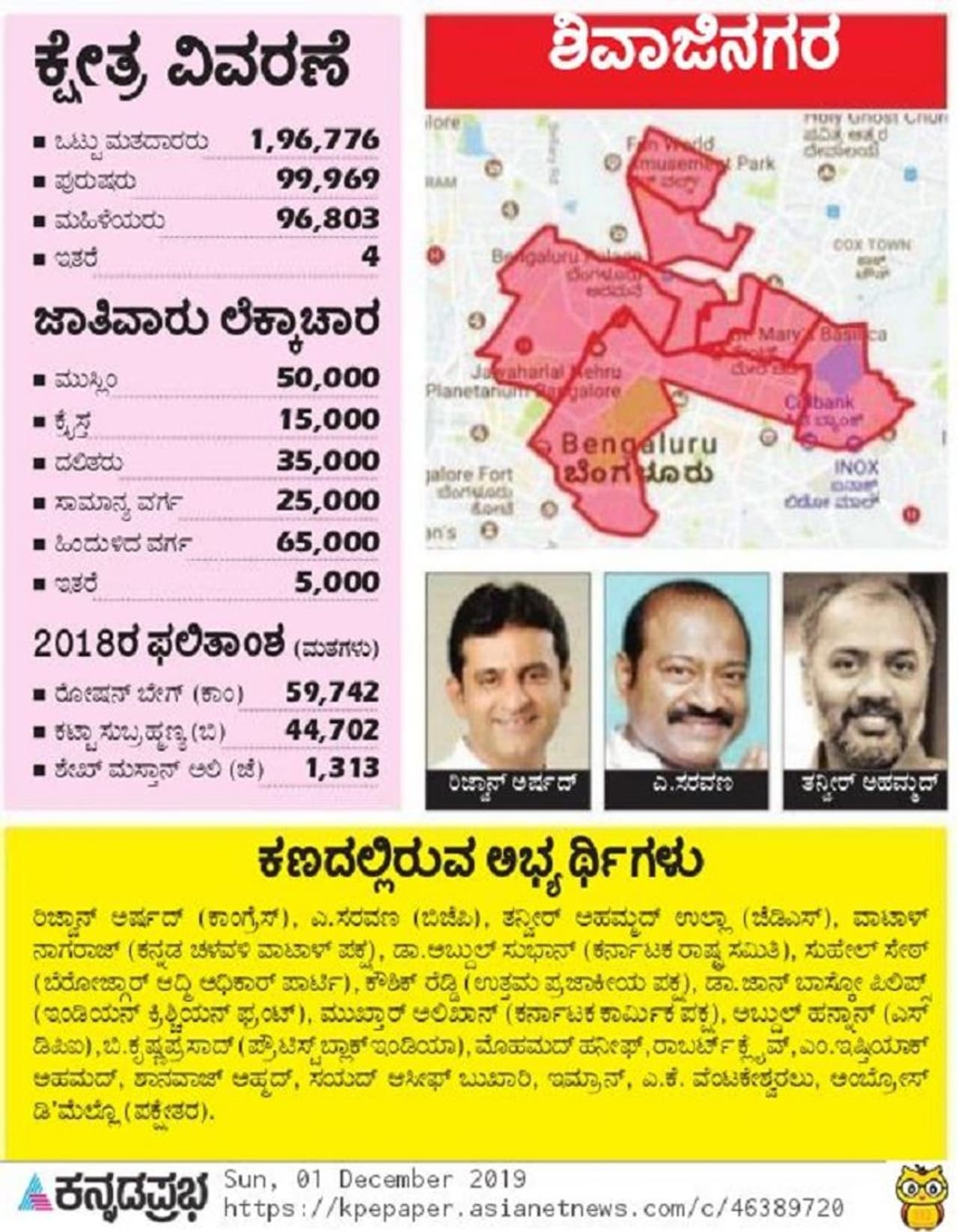 ಬೆಂಗಳೂರು (ಡಿ. 01): ಹಿಂದು, ಮುಸ್ಲಿಂ ಸೇರಿದಂತೆ ಸರ್ವಧರ್ಮೀಯ ಹಾಗೂ ಕನ್ನಡ, ತಮಿಳು, ತೆಲುಗು ಸೇರಿದಂತೆ ಬಹುಭಾಷಾ ಜನರನ್ನು ಒಳಗೊಂಡಿರುವ ಶಿವಾಜಿನಗರ ವಿಧಾನಸಭಾ ಕ್ಷೇತ್ರ ಒಂದು ಮಿನಿಭಾರತ. ಮುಸ್ಲಿಮರು ಮತ್ತು ತಮಿಳರೇ ನಿರ್ಣಾಯಕರಾದ ಕ್ಷೇತ್ರದ ಉಪಚುನಾವಣೆಯಲ್ಲಿ ಬಿಜೆಪಿ ಮತ್ತು ಕಾಂಗ್ರೆಸ್ ನಡುವೆ ನೇರ ಹಣಾಹಣಿ ಏರ್ಪಟ್ಟಿದೆ.