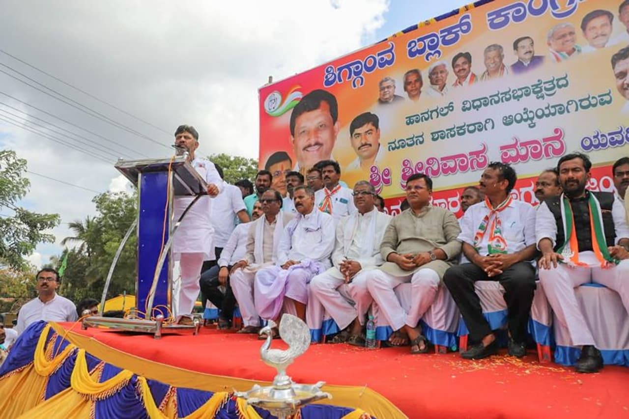 ಈ ಹಿನ್ನಲೆಯಲ್ಲಿ ನೂತನ ಶಾಸಕರಾಗಿ ಆಯ್ಕೆಯಾದ ಶ್ರೀನಿವಾಸ ಮಾನೆ (Srinivas Mane) ಅವರಿಗೆ ಇಂದು (ನ.05) ಶಿಗ್ಗಾವಿ ಬ್ಲಾಕ್ ಕಾಂಗ್ರೆಸ್ ಸಮಿತಿ ಅಭಿನಂದನಾ ಕಾರ್ಯಕ್ರಮ ಹಮ್ಮಿಕೊಂಡಿತ್ತು. ಈ ಸಮಾರಂಭದಲ್ಲಿ ಖುದ್ದು ಕೆಪಿಸಿಸಿ ಅಧ್ಯಕ್ಷ ಡಿಕೆ ಶಿವಕುಮಾರ್ (DK Shivakumar) ಪಾಲ್ಗೊಂಡಿ ಕಾರ್ಯಕರ್ತರ ಉತ್ಸಹ ಹೆಚ್ಚಿಸಿದರು.
