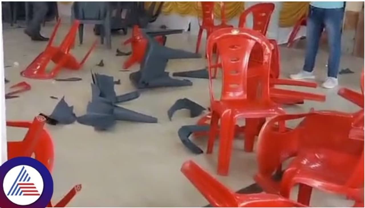 ಹಾಸನ (ಡಿ.09): ಹಾಸನದ ಬೇಲೂರು ಪಟ್ಟಣದಲ್ಲಿ ನಡೆದ ಕಾಂಗ್ರೆಸ್ ಕಾರ್ಯರ್ತರ ಸಭೆಯಲ್ಲಿ ಮಾರಾಮಾರಿ ನಡೆದಿದೆ. ಡಬ್ಲ್ಯೂಡಬ್ಲ್ಯೂಇನಲ್ಲಿ (WWE) ಹೊಡೆದಾಡಿಕೊಳ್ಳುವಂತೆ ಕುಳಿತುಕೊಳ್ಳುವ ಕುರ್ಚಿಗಳನ್ನು (chairs) ಹಿಡಿದು ಹೊಡೆದಾಡಿಕೊಂಡಿದ್ದಾರೆ. ಸಭೆಗೆ ಹಾಕಲಾಗಿದ್ದ ಚೇರುಗಳನ್ನು ಒಡೆದು ಪುಡಿ, ಪುಡಿ ಮಾಡಿದ್ದಾರೆ.