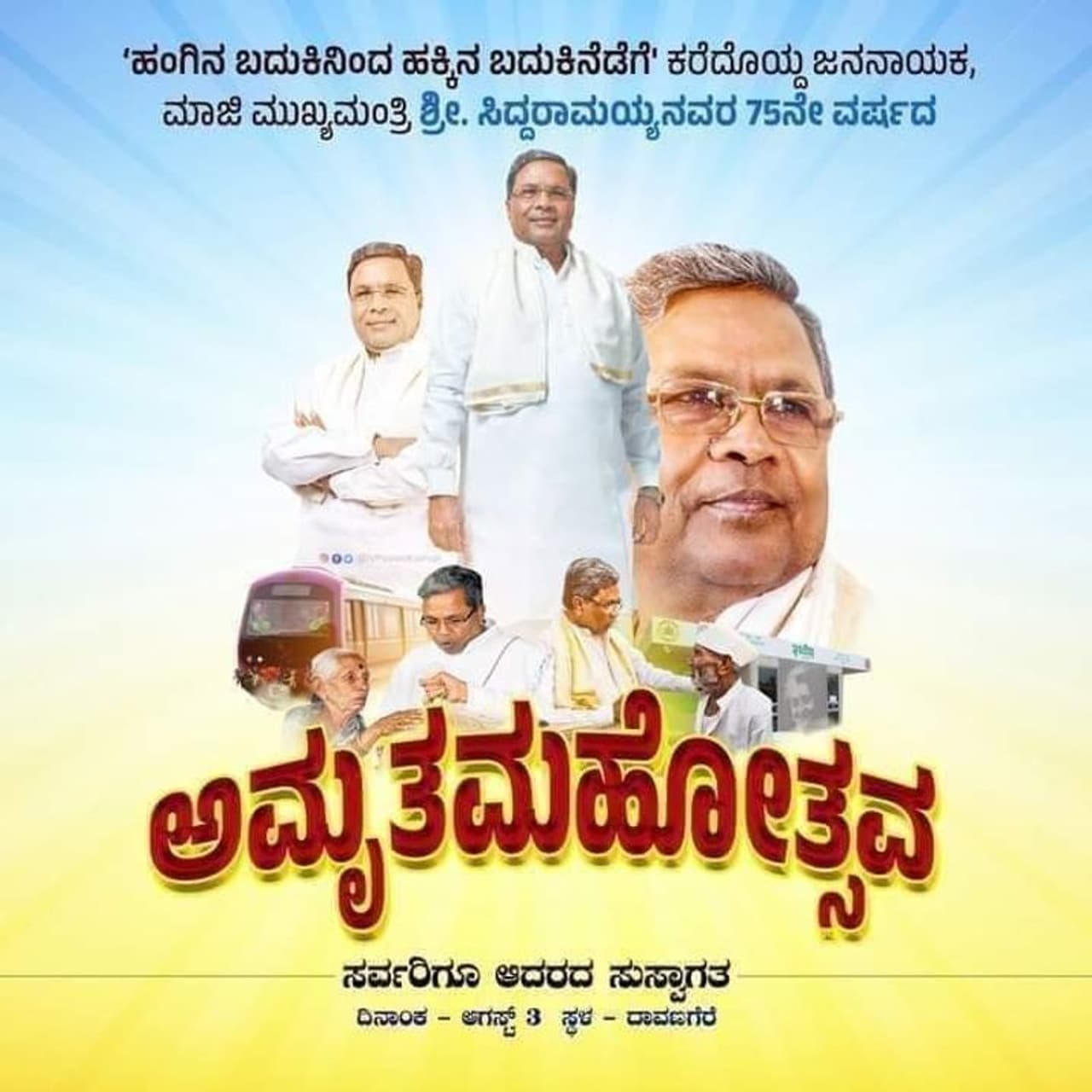 ಮಾಜಿ ಮುಖ್ಯಮಂತ್ರಿ ಸಿದ್ದರಾಮಯ್ಯನವರ 75ನೇ ಜನ್ಮದಿನ ಅಂಗವಾಗಿ ನಡೆಯಲಿರುವ ಅಮೃತಮಹೋತ್ಸವ ಹೇಗಿರಲಿದೆ? ವ್ಯವಸ್ಥೆ ಹೇಗಿದೆ? ಕಾರ್ಯಕ್ರಮಕ್ಕೆ ಆಗಮಿಸುವ ಕಾರ್ಯಕರ್ತರಿಗೆ ಏನೆಲ್ಲಾ ಊಟ? ಹೇಗೆಲ್ಲಾ ಸಿದ್ಧತೆಗಳು ನಡೆದಿವೆ ಎನ್ನುವ ಸಂಪೂರ್ಣ ಮಾಹಿತಿ ಇಲ್ಲಿದೆ.