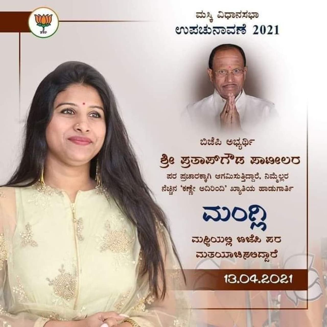 ಹೌದು...ಇದೇ ಏ. 13ರಂದು ಮಸ್ಕಿ ವಿಧಾನಸಭಾ ಉಪಚುನಾವಣೆಯಲ್ಲಿ ಬಿಜೆಪಿ ಅಭ್ಯರ್ಥಿ ಪ್ರತಾಪ್ ಗೌಡ ಪಾಟೀಲ್ ಪರ ಮಂಗ್ಲಿ ಅವರು ಪ್ರಚಾರ ನಡೆಸಲಿದ್ದಾರೆ.