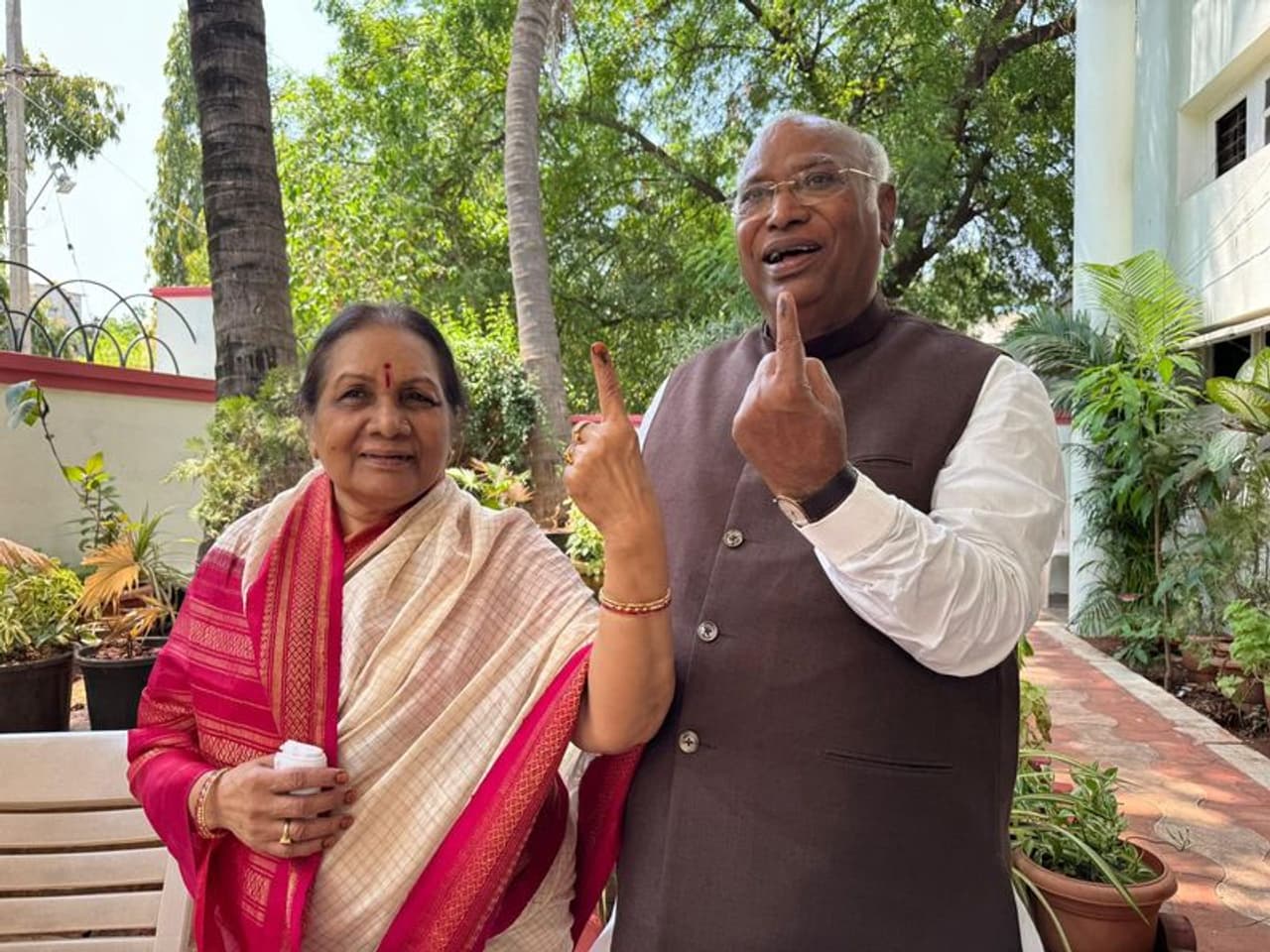 ಕಲಬುರಗಿಯಲ್ಲಿ ಮತದಾನ ಮಾಡಿದ ಎಐಸಿಸಿ ಅಧ್ಯಕ್ಷ ಮಲ್ಲಿಕಾರ್ಜುನ ಖರ್ಗೆ: ಕಲಬುರಗಿಯ ಬಸವನಗರ ಬಡಾವಣೆಯ ಸರಕಾರಿ ಪ್ರಾಥಮಿಕ ಶಾಲಾ ಮತಗಟ್ಟೆಯಲ್ಲಿ ಪತ್ನಿ ರಾಧಾಬಾಯಿ ಜೊತೆಗೆ ಎಐಸಿಸಿ ಅಧ್ಯಕ್ಷ ಮಲ್ಲಿಕಾರ್ಜುನ ಖರ್ಗೆ ಮತದಾನ ಮಾಡಿದರು. ನಂತರ ಮಾಧ್ಯಮಗಳೊಂದಿಗೆ ಮಾತನಾಡಿದ ಅವರು, ನನಗೆ ಮತದಾನದ ಹಕ್ಕು ಆರಂಭವಾದಗಿನಿಂದ ಕಲಬುರಗಿಯ ಬಸವನಗರದಲ್ಲೇ ಮತದಾನ ಮಾಡುತ್ತಿದ್ದೆನೆ. ಎಷ್ಟೋ ಜನ ಮತದಾನ ವನ್ನು ಬದಲಾವಣೆ ಮಾಡಿಕೊಂಡಿದ್ದಾರೆ. ಆದರೆ, ನಾನು ಮಾತ್ರ ಬಸವನಗರದ ಇದೇ ಮತಗಟ್ಟೆಯಿಂದಲೇ ಮತದಾನ ಮಾಡುತ್ತಿದ್ದೇನೆ. ನಮ್ಮ ಕಾಂಗ್ರೆಸ್ ಅಭ್ಯರ್ಥಿ ರಾಧಾಕೃಷ್ಣ ದೊಡ್ಢಮನಿ ಗೆಲ್ಲುತ್ತಾರೆ ಎನ್ನುವ ಭರವಸೆ ಇದೆ. ನನ್ನನ್ನು ಎಐಸಿಸಿಅದ್ಯಕ್ಷ ಸ್ಥಾನಕ್ಕೆ ತಂದು ನಿಲ್ಲಿಸಿದ್ದಾರೆ, ಈ ಜನರೇ ಕಾರಣ ಅವರಿಗೆ ಧನ್ಯವಾದಗಳು. ಇಂದು ಚುನಾವಣೆ ನಡೆಯುತ್ತಿರುವ ಎಲ್ಲಾ 14 ಕ್ಷೇತ್ರದಲ್ಲಿ ಒಳ್ಳೆ ವಾತಾವರಣ ಸೃಷ್ಠಿಯಾಗಿದೆ. ದೇಶದಲ್ಲಿ ಇಂಡಿಯಾ ಮೈತ್ರಿಕೂಟದ ಅಭ್ಯರ್ಥಿಗಳ ಪರ ಹೆಚ್ಚು ಒಲವು ವ್ಯಕ್ತವಾಗುತ್ತಿದೆ ಎಂದು ಹೇಳಿದರು.