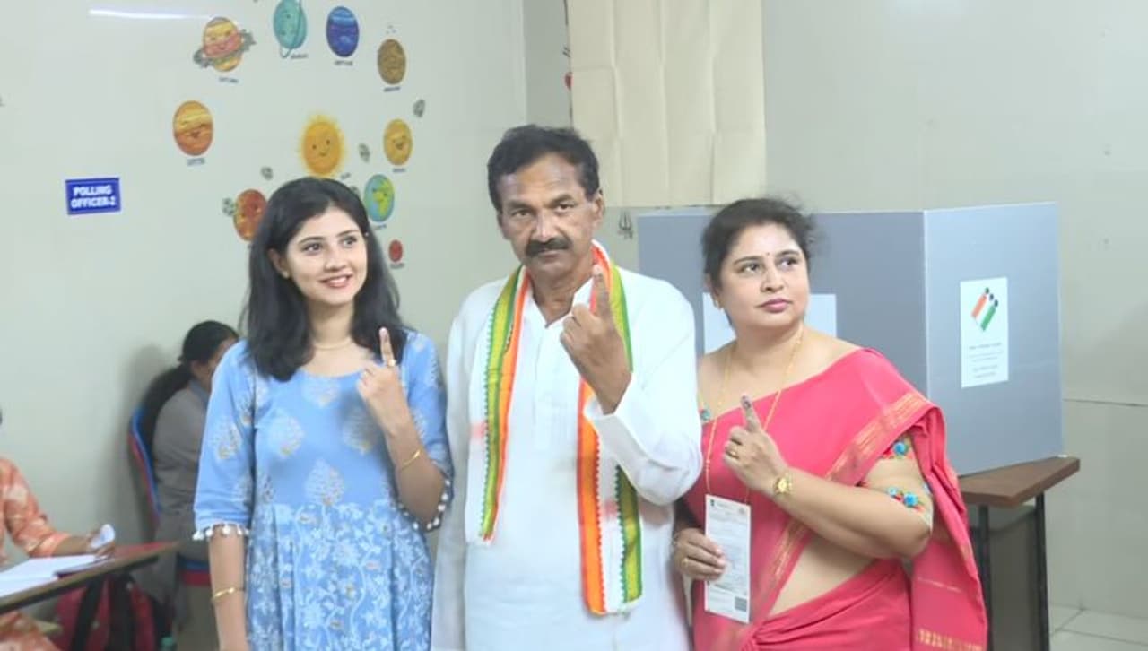ಮೈಸೂರು ಕೊಡಗು ಲೋಕಸಭಾ ಕ್ಷೇತ್ರದ ಕಾಂಗ್ರೆಸ್ ಅಭ್ಯರ್ಥಿ ಎಂ.ಲಕ್ಷ್ಮಣ್ ಕುಟುಂಬ ಸಮೇತರಾಗಿ ಬಂದು ಮತದಾನ ಮಾಡಿದ್ದಾರೆ. ಮೈಸೂರಿನ ಯಾದವಗಿರಿಯ ಸುನಂದ ಪಬ್ಲಿಕ್ ಶಾಲೆಯ ಮತಗಟ್ಟೆ 145ರಲ್ಲಿ ಮತದಾನ ಮಾಡಿದ್ದಾರೆ. ಇನ್ನು ಲಕ್ಷ್ಮಣ್ ಅವರಿಗೆ ಪತ್ನಿ ಹಾಗೂ ಮಗಳು ಸಾಥ್ ನೀಡಿದ್ದಾರೆ.