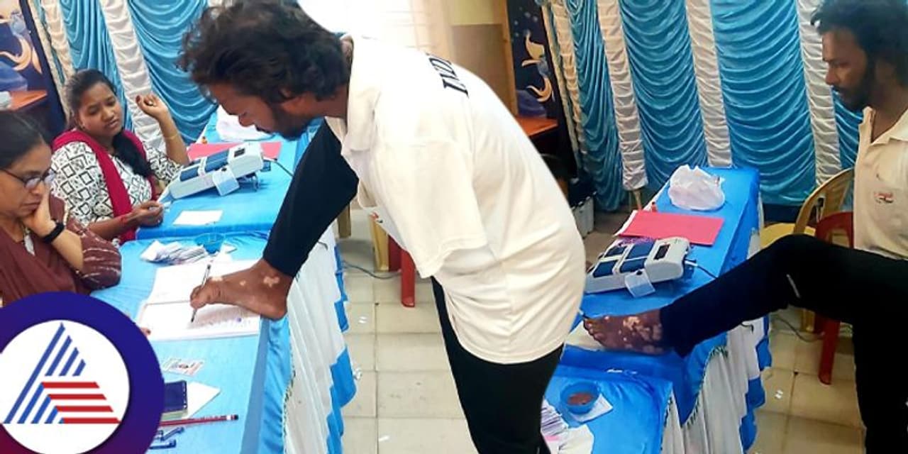 ತಮ್ಮ ಕಾಲಿನಿಂದಲೇ ತಮ್ಮ ಸಾಮರ್ಥ್ಯ ಏನು ತೋರಿಸಿದ ವಿಶ್ವಾಸ್ ಅವರು ಕಾಲಲ್ಲೇ ಮತದಾನ ಮಾಡಿದ್ದಾರೆ.
